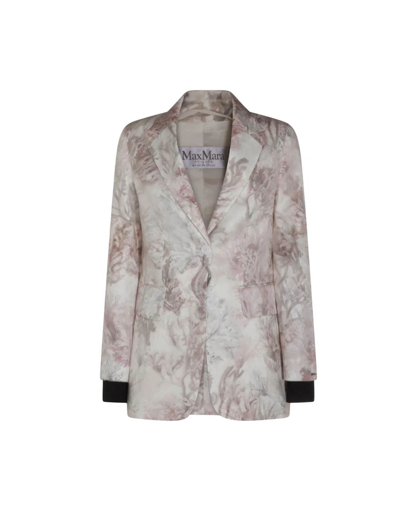 Multicolor silk MxsPalomba blazer from Max Mara featuring lapel collar, long sleeves, all-over florar print, frontal closure, curved hem and regular fit. Composition: _, 100% Silk Made in: Italy Color: White Model number: 2611041303600001