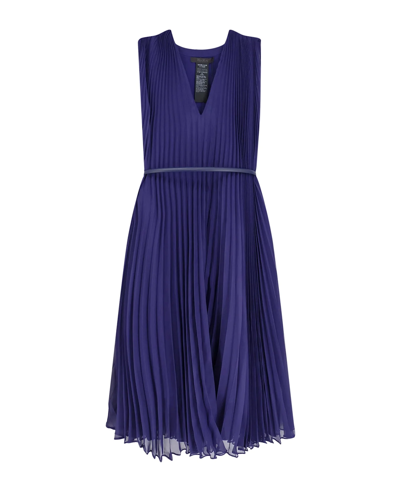 V-neckline Sleeveless Pleated Flared Made in Italy 100% polyester Lining: 85% acetate, 10% silk, 5% polyamide SKU: 2611221024600005 Made in: Italy Color: Blue Model number: 2611221024600005