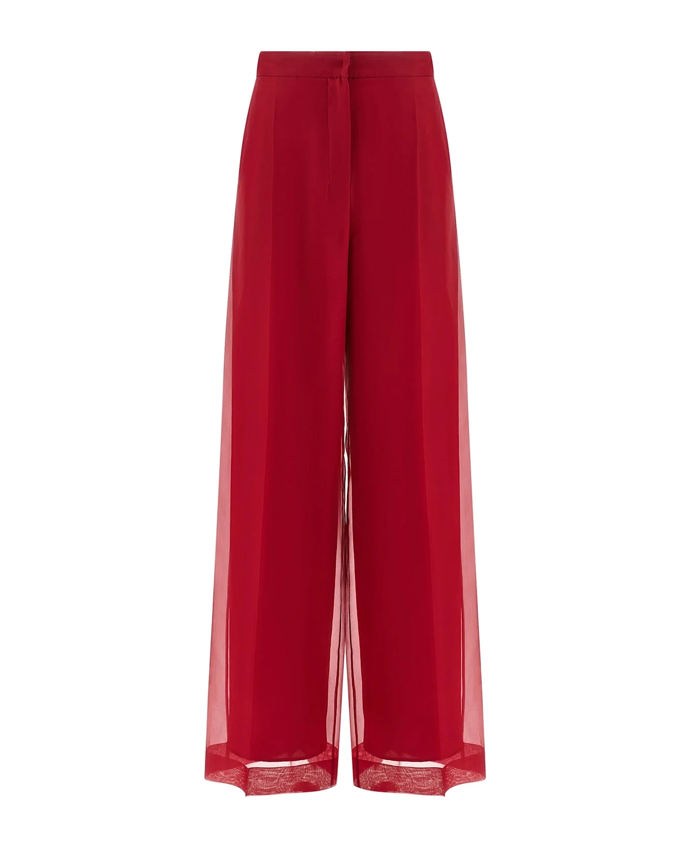 'MxeOlivi' silk organza pants, lining, wide and straight leg, stretched pleat, zip hook and front button closure, pockets, back pin tucks. Composition: 100% silk Made in: Italy Color: Red Size and fit: - true to size fit Model number: 2611131044600003