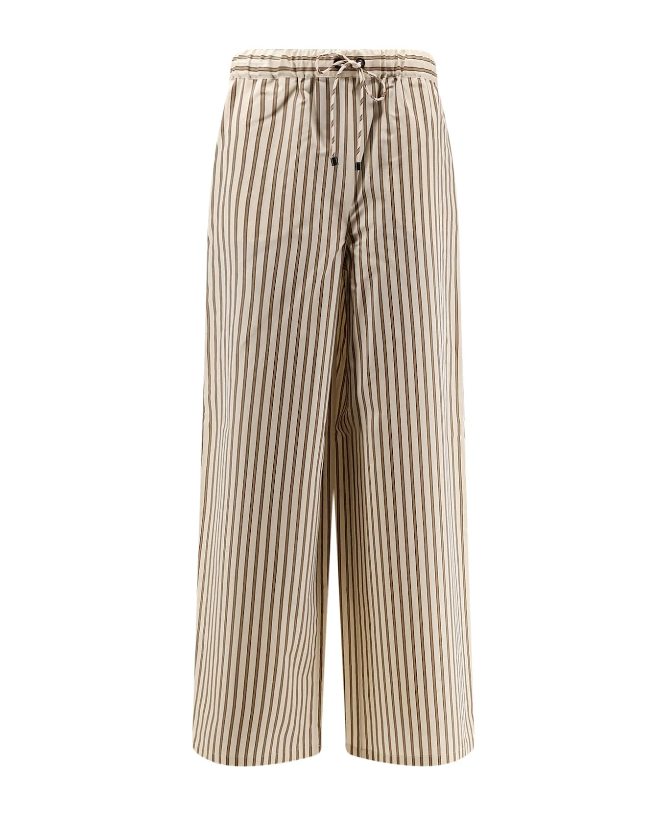 Elastic waistband Adjustable drawstring Wide leg Striped pattern Made in Italy 85% cotton, 15% silk SKU: 2611131132600002 Made in: Italy Color: Beige Model number: 2611131132600002