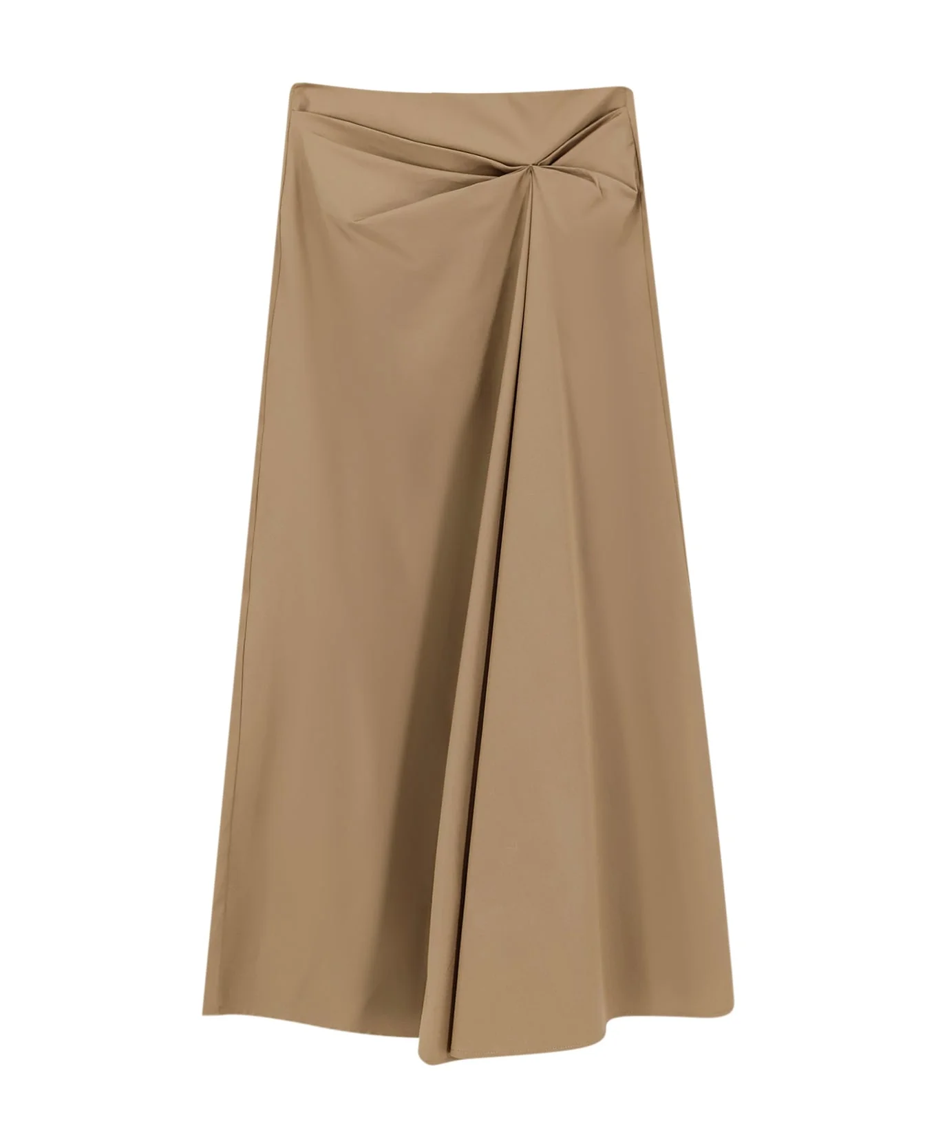 Back zip closure Draped front Flared Unlined Made in Italy 82% cotton, 14% polyamide, 4% elastane SKU: 2611101012600003 Made in: Italy Color: Deserto Model number: 2611101012600003