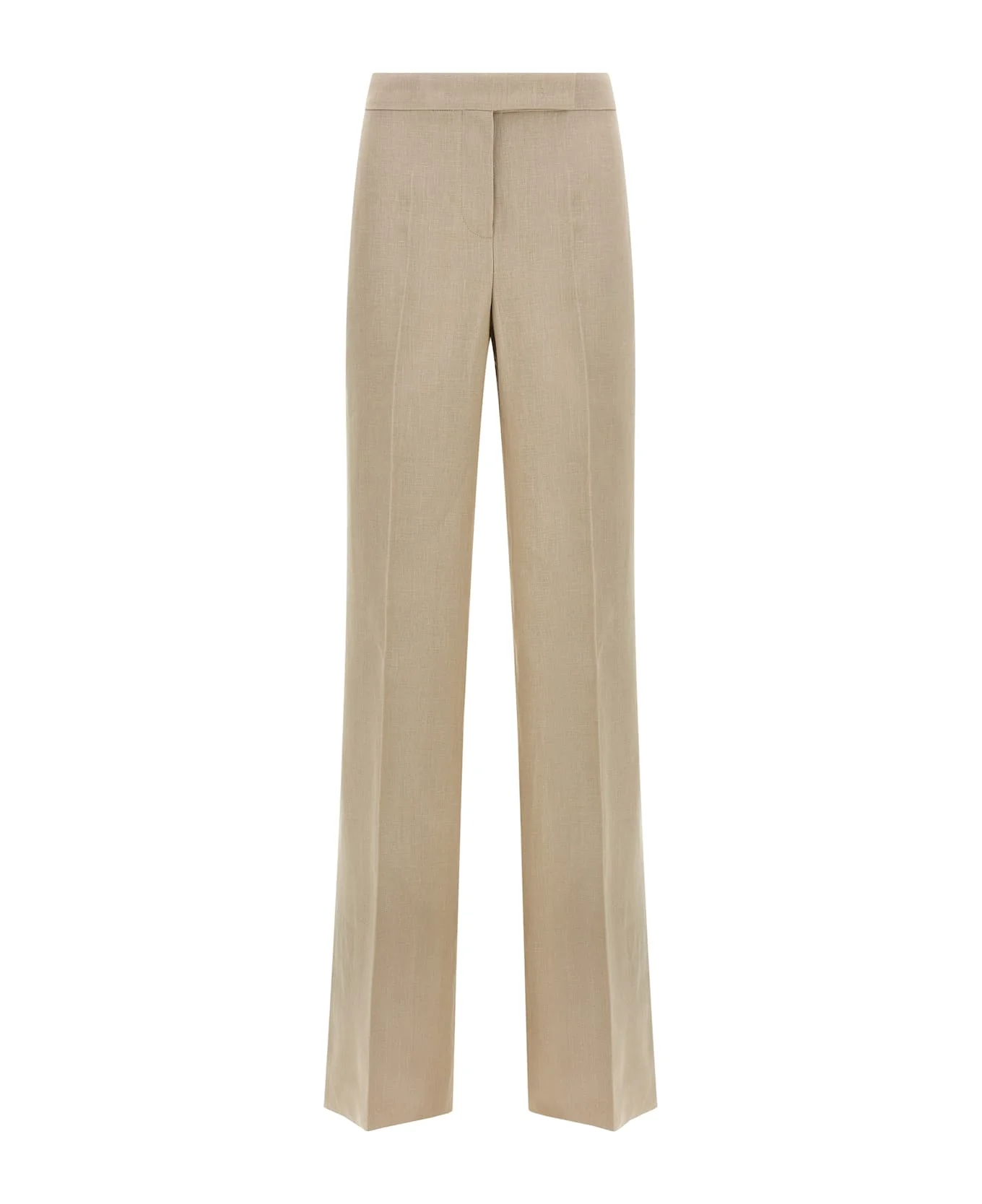 'MxsAngus' heavy linen trousers, extra wide flared leg, stretched pleat, mid waist, zip hook and front button closure, front French pockets, back welt pockets, hem to be finished. Composition: 100% linen Made in: Italy Color: Beige Size and fit: - true to size fit Model number: 2611131283600001