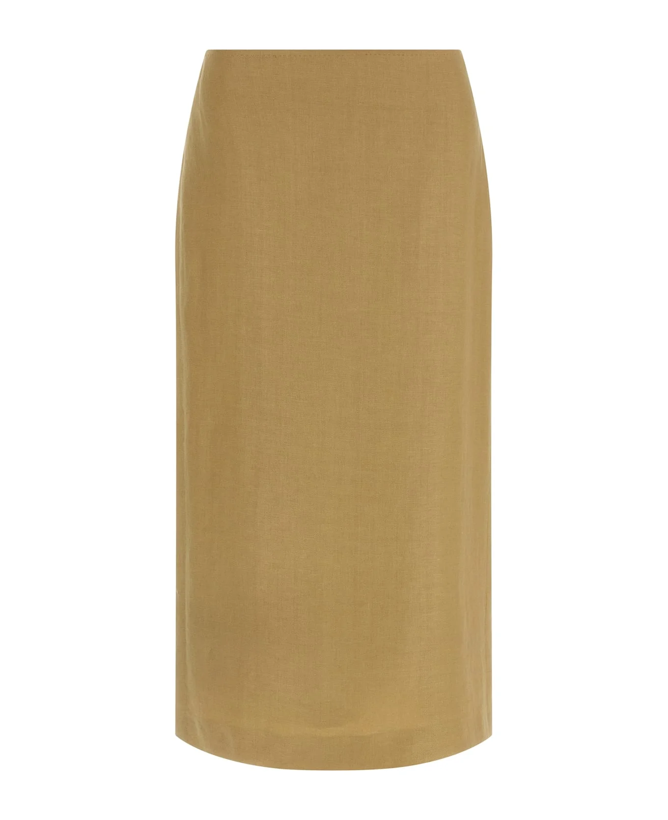 Midi skirt MxsVeranda diagonally in pure linen with matt finish, longuette model, tailored dot at the waist, zip closure and wide back split. Composition: 100% linen Made in: Italy Color: Beige Size and fit: - Slim fit Model number: 2611101173600003
