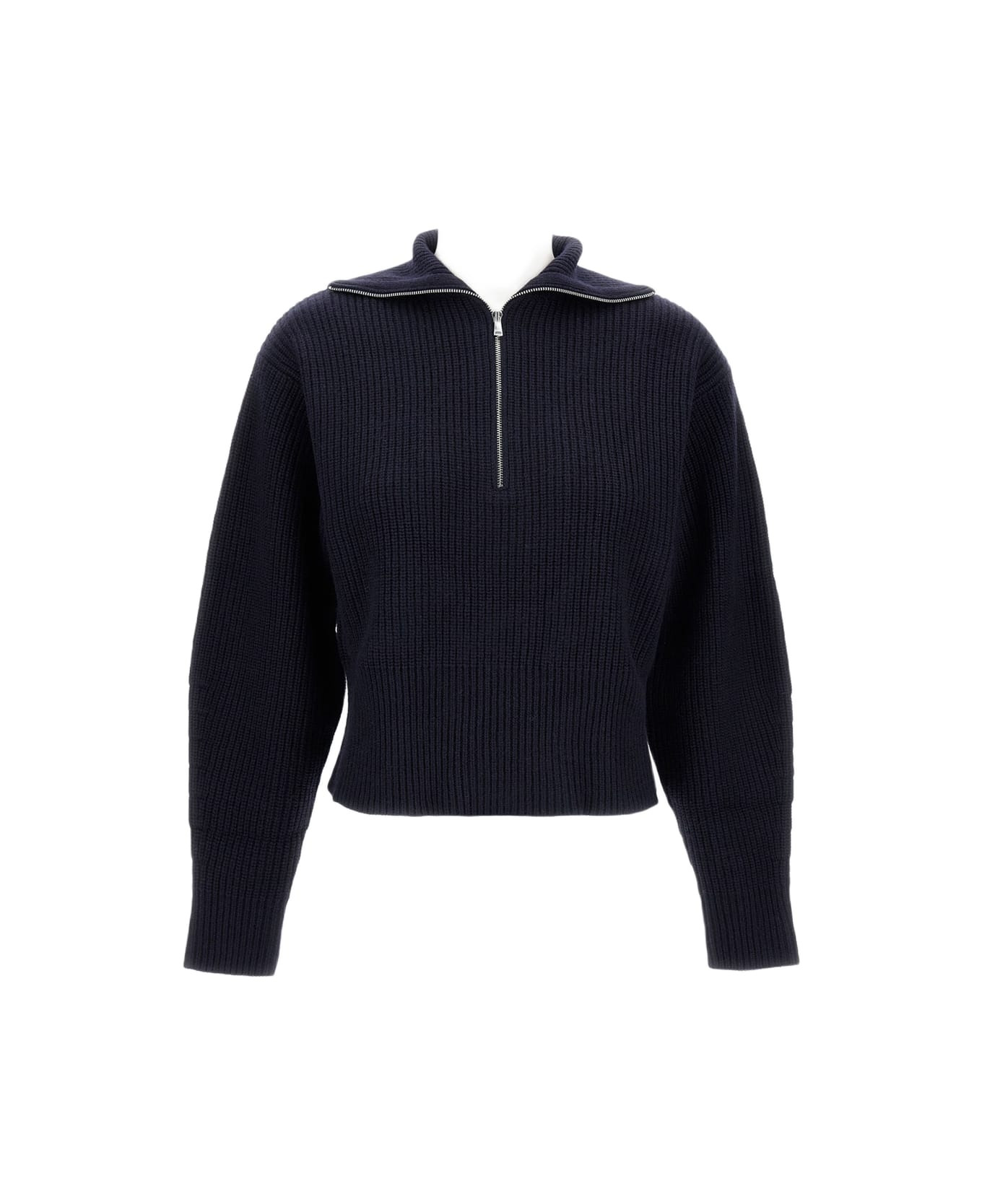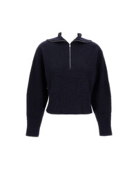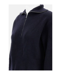 Wool and cashmere blend sweater with a turtleneck and zip, small cable pattern, seamless, blue Composition: 70% Wool, 30% Cashmere Made in: China Color: Blue Model number: 2521366182600003