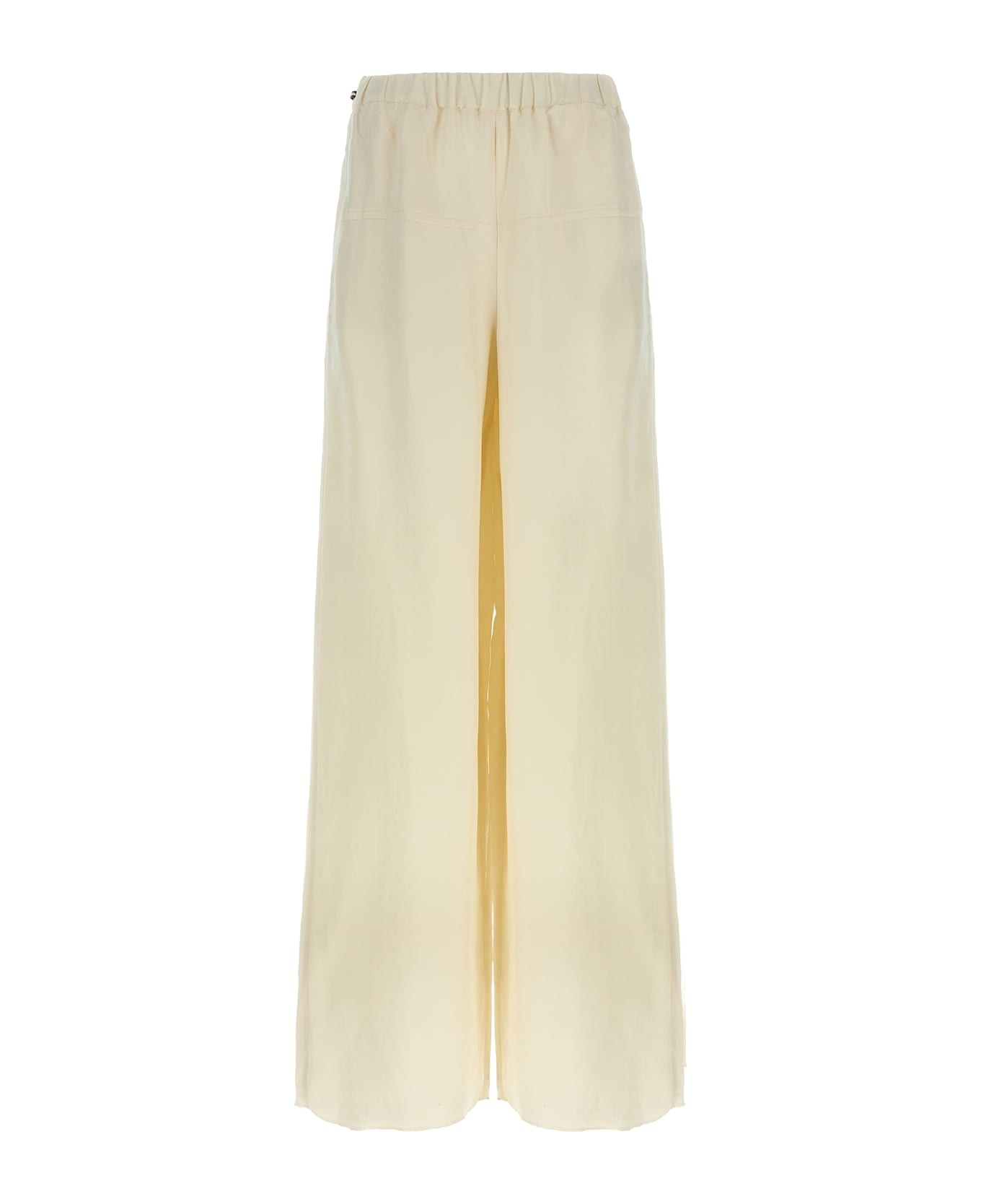 'Onore' pants in washed linen and silk twill, high waist model with wide leg, elastic waistband with metal eyelets and drawstring on the sides, pockets. Composition: 60% flaxlinen 40% silk Made in: Italy Color: White Size and fit: - true to size fit Model number: 2511131112600003