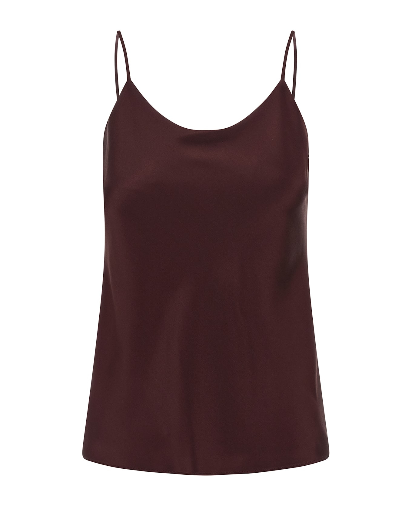 'Ontano' silk top with round neckline at the front and back, thin straps. Composition: 100% silk Made in: Italy Color: Bordeaux Size and fit: - true to size fit Model number: 2521166014600041
