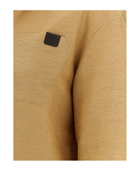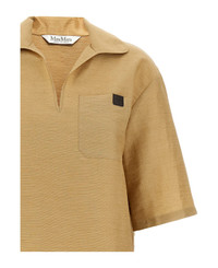 'Osiride' polo shirt with a straight line, collar, V-neck, leather patch pocket with embossed logo, short sleeves with dropped shoulders, asymmetric hem, side slits. Composition: 51% fl, 37% silk, 12% pa Made in: Italy Color: Gold Size and fit: - oversized fit Model number: 2511191019600002