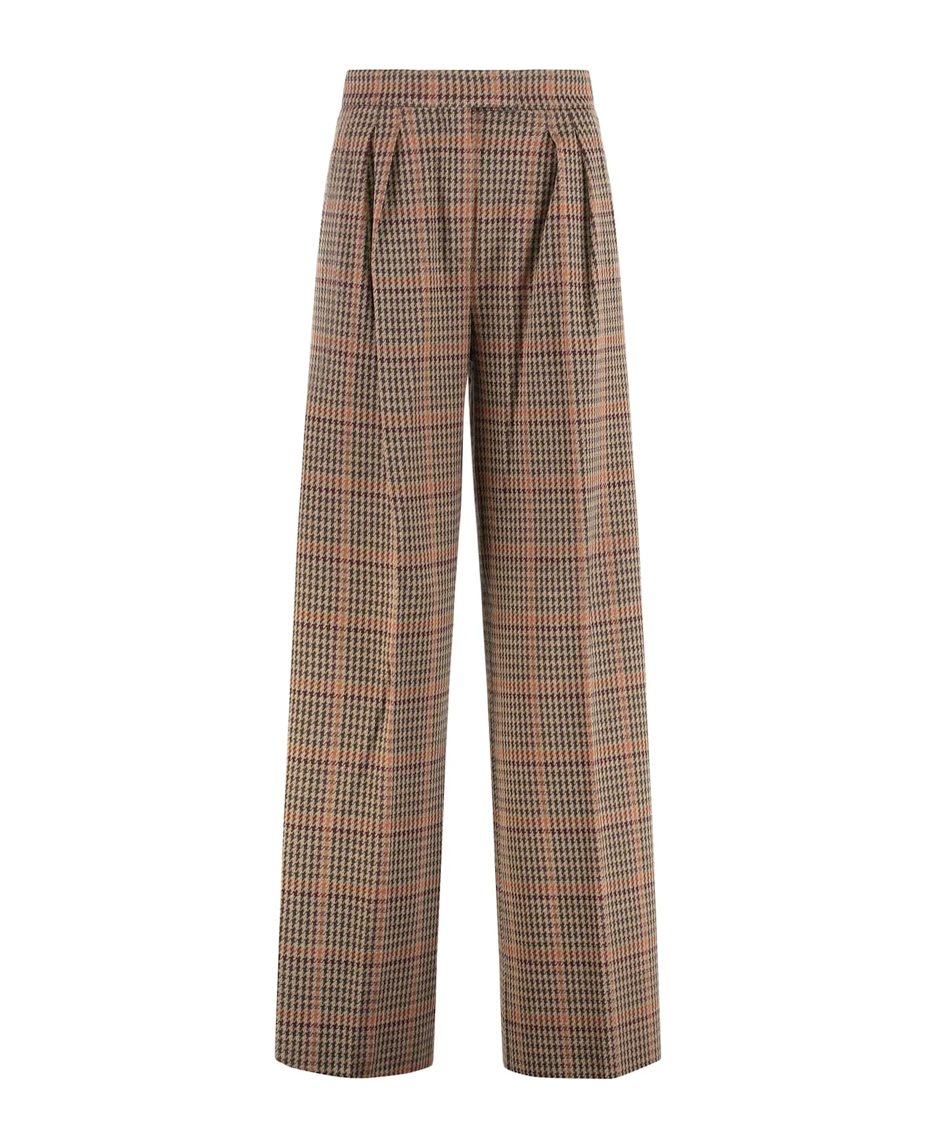 Loose-fitting trousers with a masculine inspiration, made of soft and lightweight fabric. they feature an elegant prince of wales pattern, perfect for a casual or formal look. the waistband is regular with double pleats in the front with a high waistband closure, zip with fly and hook, ensuring a comfortable and modern fit. ideal for versatile combinations, these trousers offer style and comfort for any occasion. 59% virgin wool, 41% cotton Composition: 59% % Virgin Wool, 41% % Cotton Made in: Italy Color: Multicolor Model number: SEGGIO2521786052600001