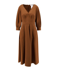 Closure with hidden zip on the back Three quarter puffed sleeve with cuff and button Slant pockets on the front Made in Italy 100% cotton SKU: 2511221132600_003 Made in: Italy Color: Brown Model number: 2511221132600003