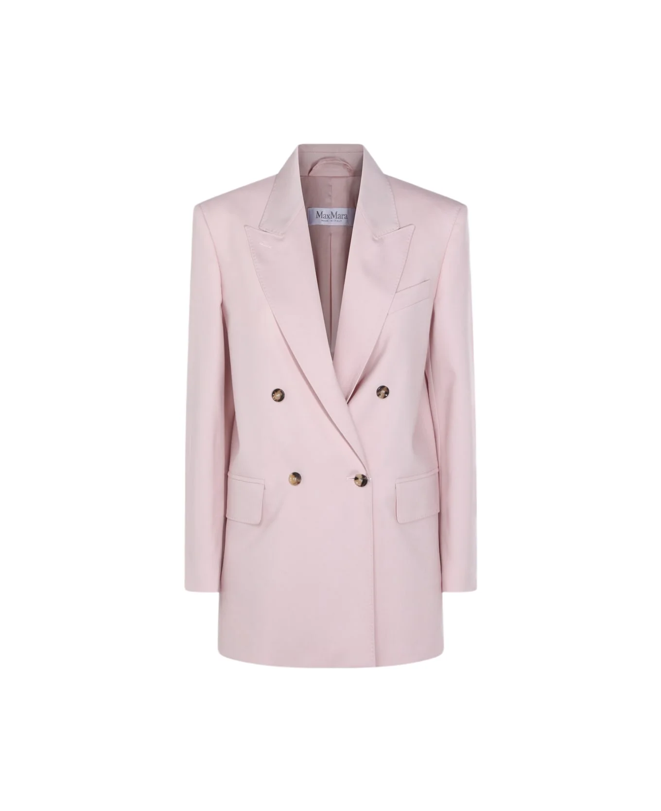 Pink wool blend blazer from Max Mara featuring double breasted, long sleeves, frontal pockets, contrasting buttons and satin lining. Composition: _, 71% Virgin Wool, 18% Mohair, 11% Silk Made in: Italy Color: BEIGE ROSA Model number: 261104117160010267022