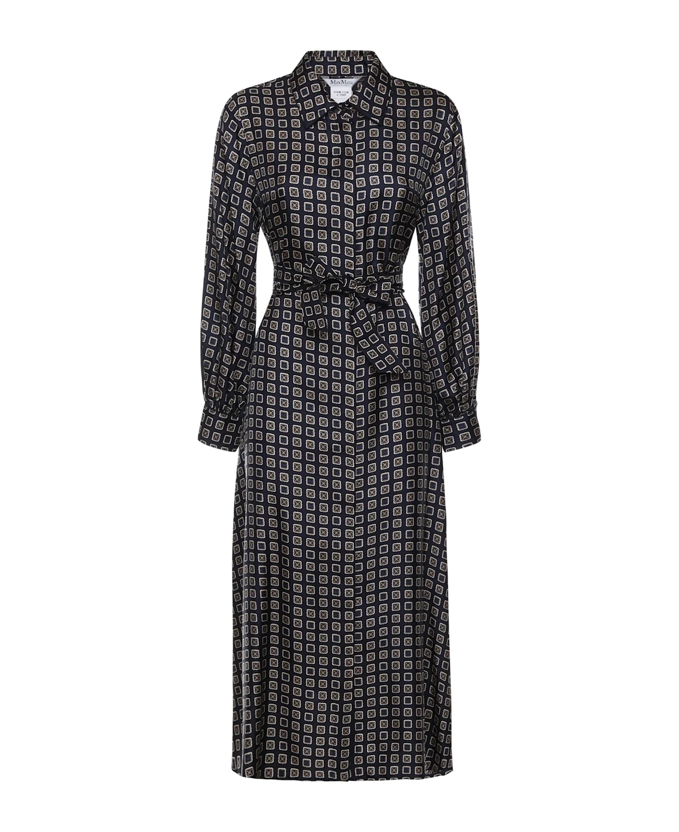 -Made of pure printed silk twill -Front button closure -Tone-on-tone waistband -Shirt collar and cuffs -Size shown is 40 -Made in Italy -Color: Navy Blue Made in: Italy Color: Blue Model number: 2611221151600002