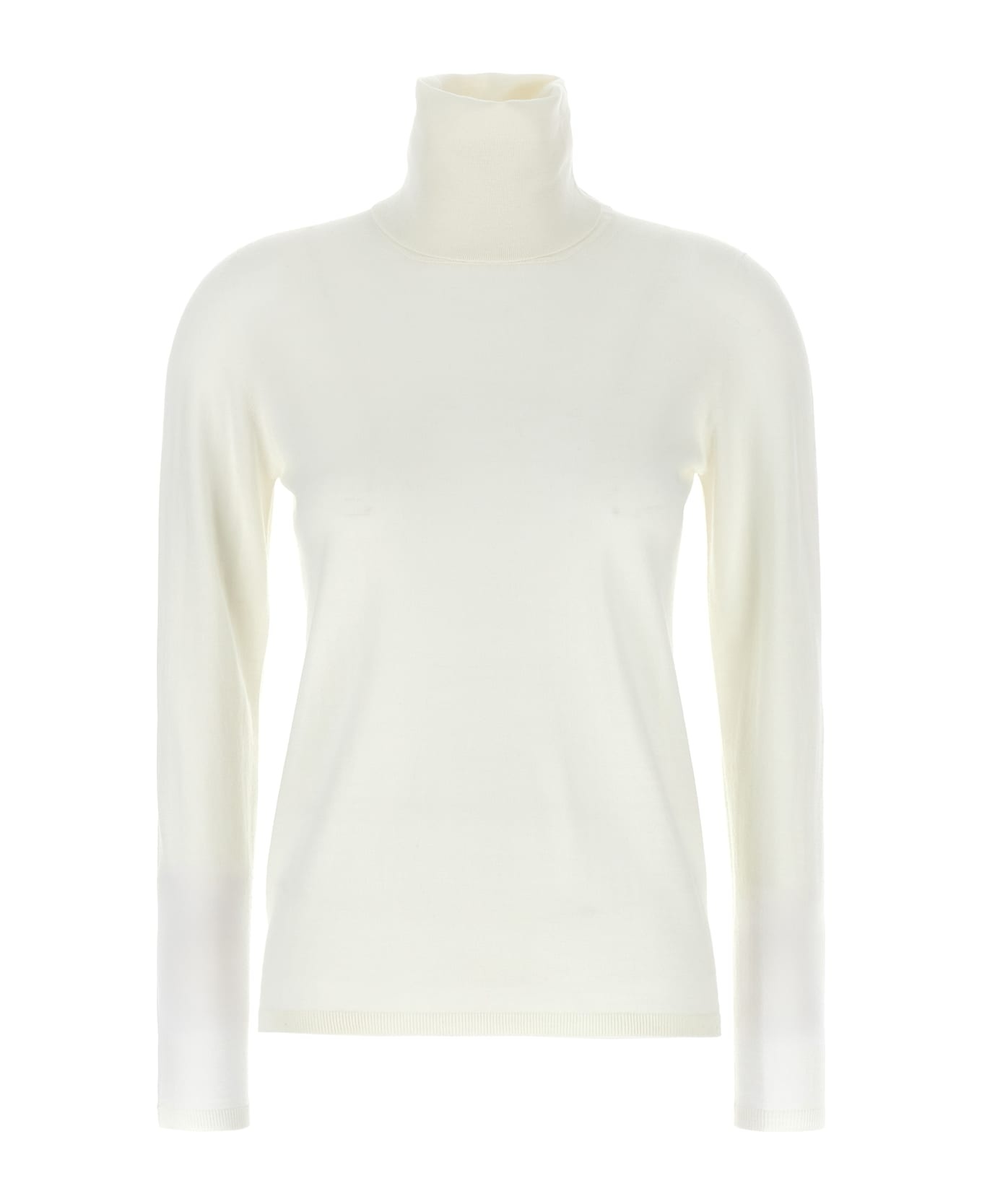 'Saluto' wool sweater with high neck, long sleeves. Composition: 100% virgin wool Made in: Italy Color: White Size and fit: - true to size fit Model number: SALUTO001
