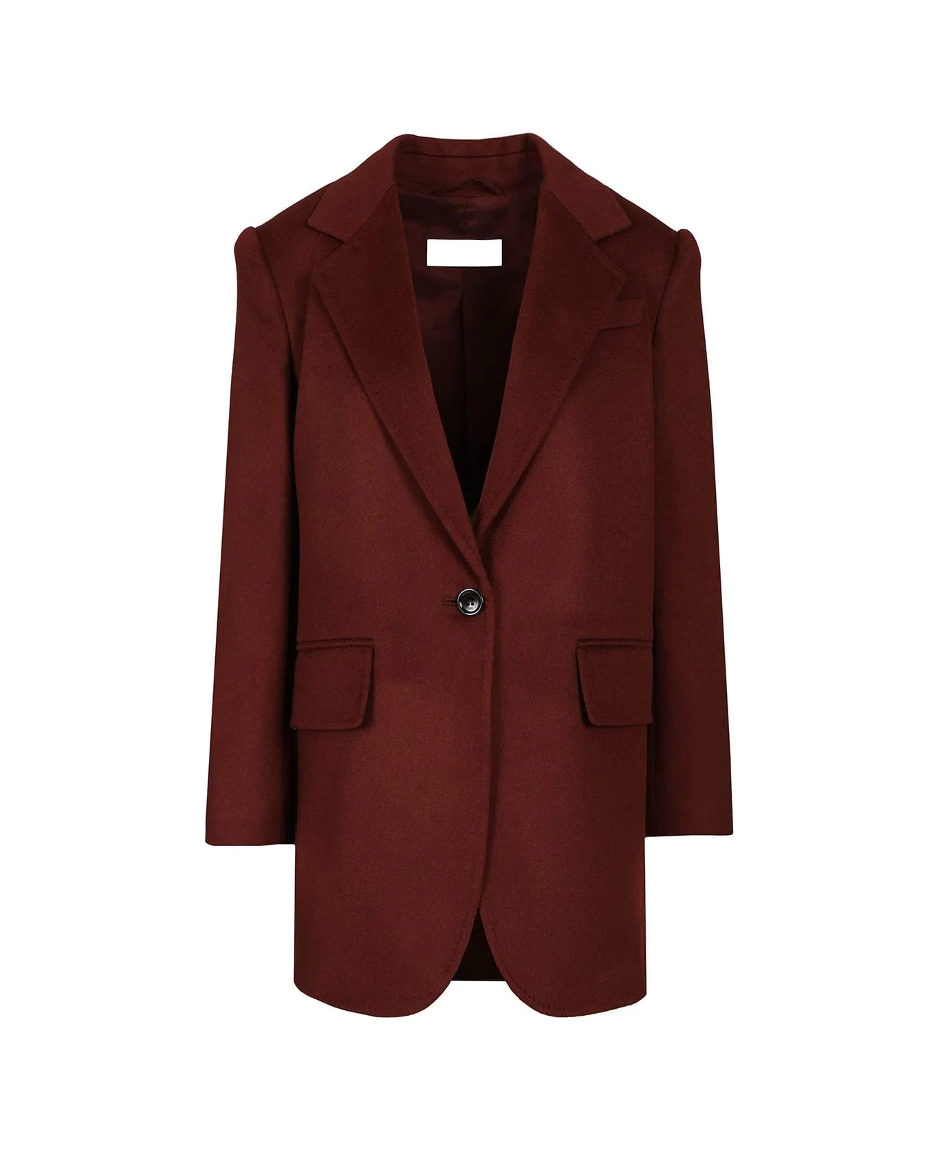 Single-breasted blazer in lightweight sable baby camel drap by Max Mara, with an oversized fit with side slits on the back, lapel collar, long sleeves with side slit and buttons on the bottom, single button fastening, breast pocket and welt pockets with flap on the front, lined Composition: 100% Camelwool Camelus dromedarius Mongolia Made in: Italy Color: RED Model number: 2521046243600362043