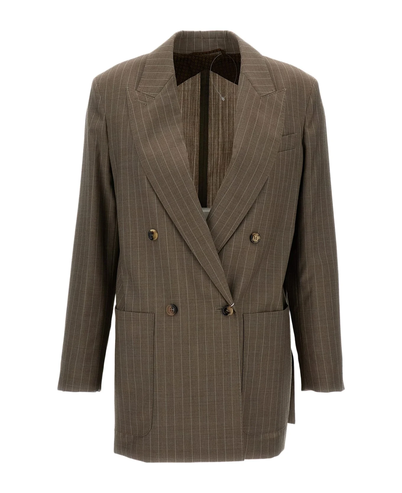 Pinstripe jacket Double-breasted Front patch pockets Peak lapel Made in Italy 100% virgin wool Composition: 100% Virgin Wool Made in: Italy Color: Brown Model number: 2611041061600001