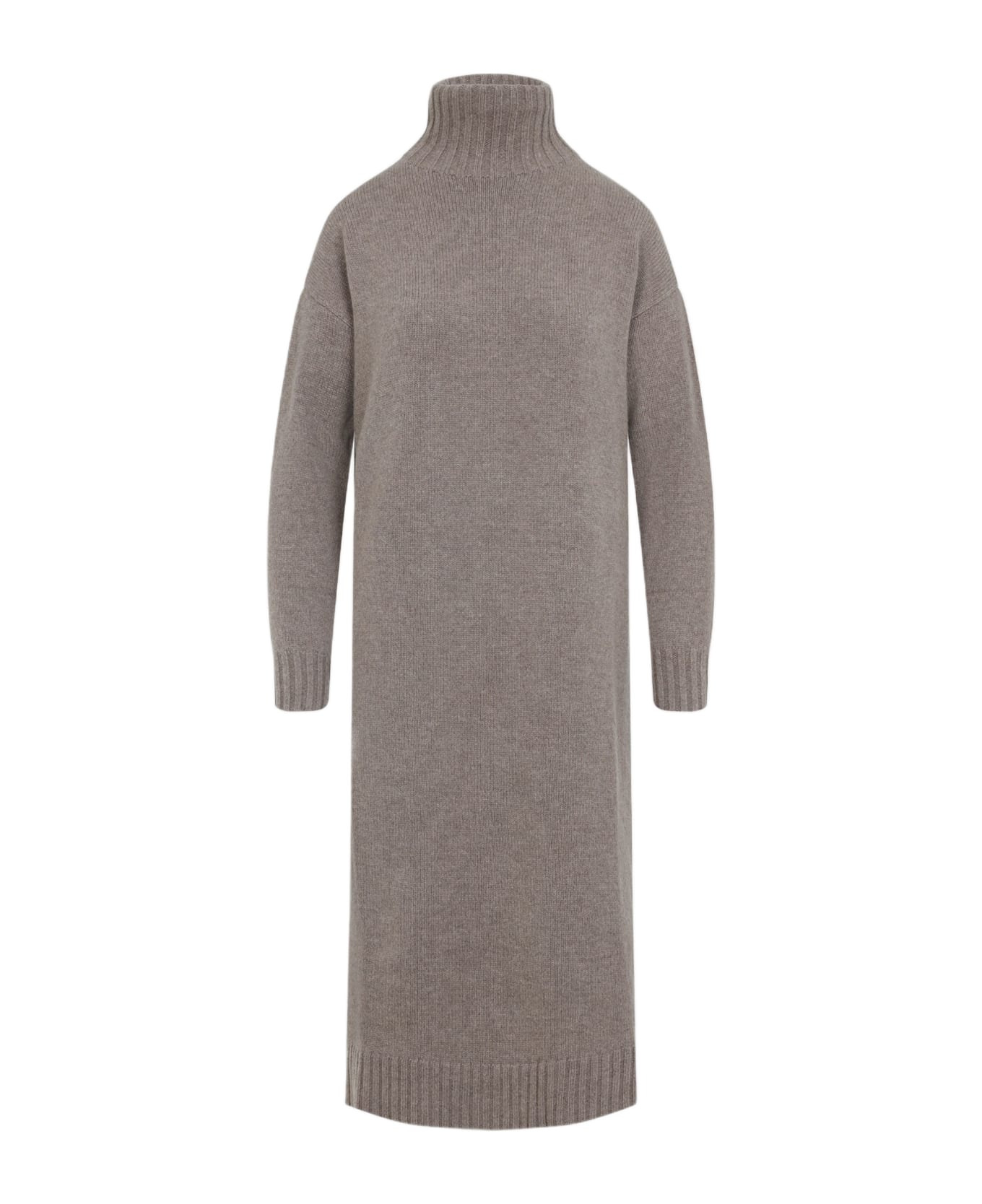 Max Mara Summer Beige Cashmere Midi Dress. Crafted from beige cashmere, turtle neck, dropped shoulders, long sleeves, ribbed edges, straight hem. Made in: Italy Color: Cacha Scuro Model number: 252132601260012116002