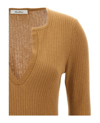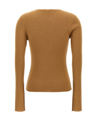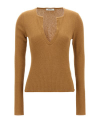 'Urlo' ribbed silk and cashmere sweater with V-neck and long sleeves. Composition: 55% silk, 45% cashmere Made in: Romania Color: Beige Size and fit: - True to size fit Model number: URLO003