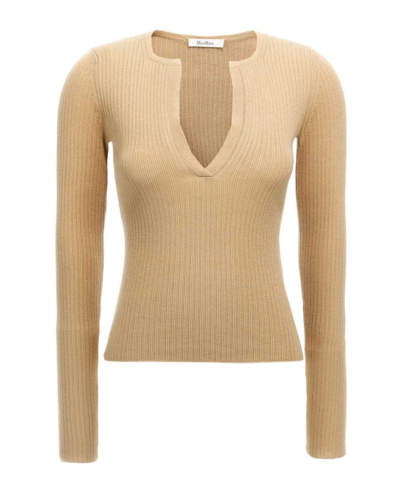 'Urlo' silk and cashmere sweater with V-neck, long sleeves. Composition: 55% silk 45% cachemire Made in: Romania Color: Beige Size and fit: - true to size fit Model number: URLO002