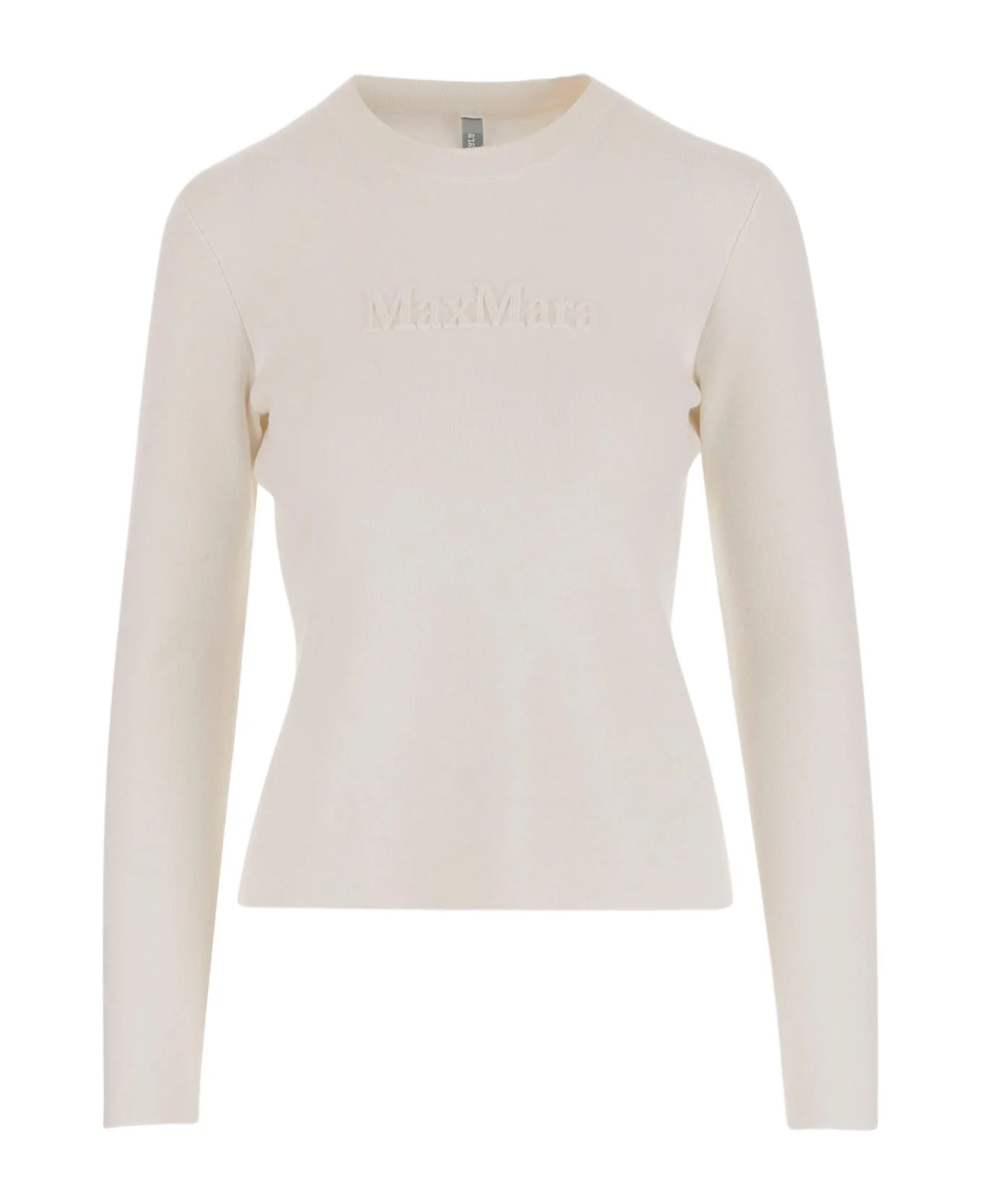 Sweater made of viscose blend Ribbed crew neck Long sleeves Logo embroidered on front Straight hem Ivory Made in Italy Composition: 43% viscose, 42% polyamide, 15% wool Made in: Italy Color: Ivory Size and fit: - The model is wearing size S. - Model measurements: - Height: 175 cm - Chest: 86.5 cm - Waist: 65 cm - Hips: 92 cm - Shoulder: 40 cm Model number: TICINO001