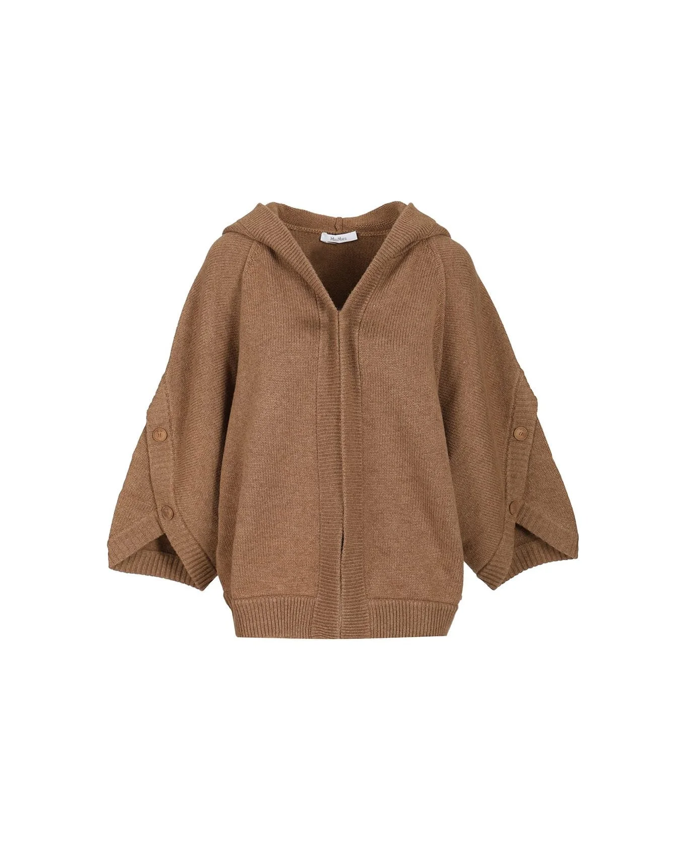 Wool and cashmere cardigan by Max Mara, with slightly oversized hood, raglan sleeves with crossed motif and horn logo buttons, personalized horn tag, bottom left on the front and ribbed finishes Composition: fabric 70% Wool Ovis aries aries, 30% Cashmere Capra hircus hircus CINA Made in: China Color: BROWN Model number: 2521346011600021006