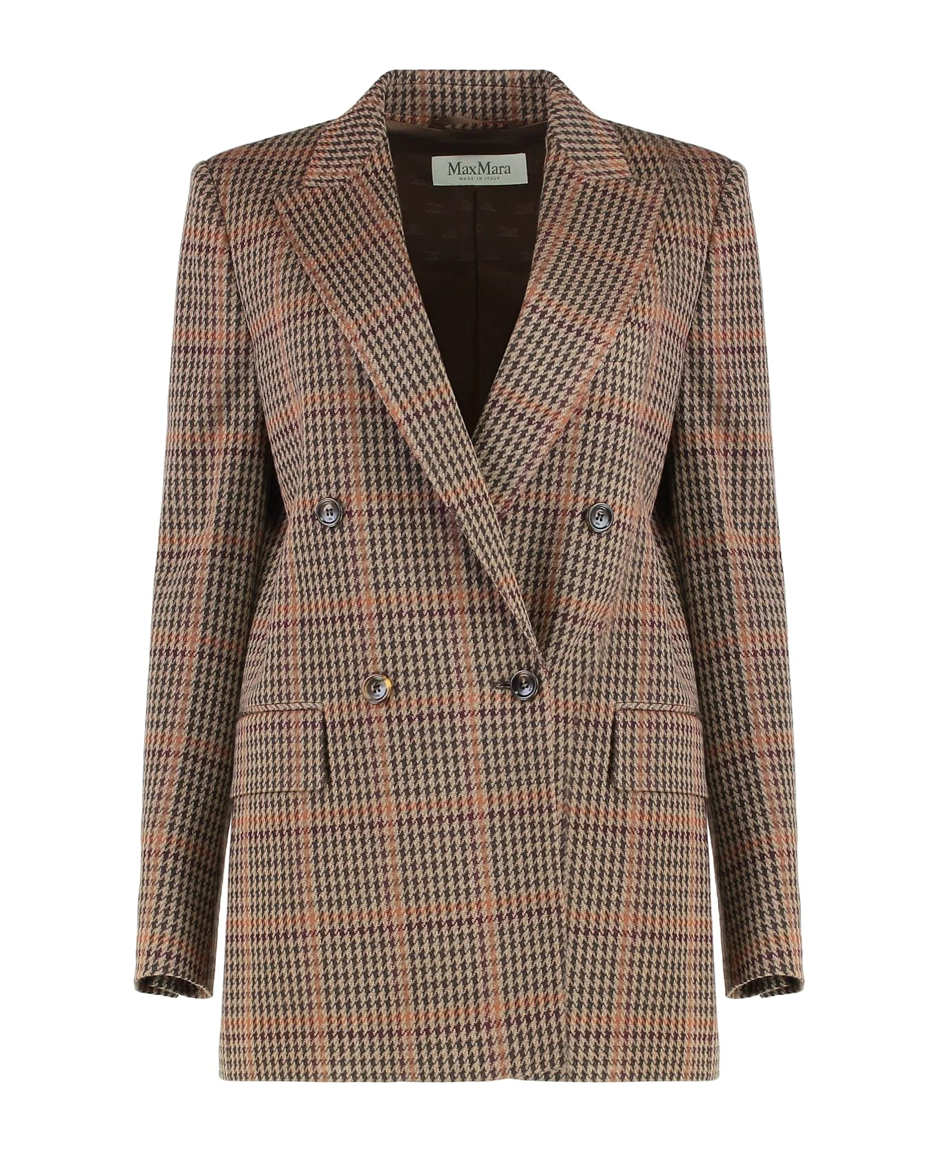 Double-breasted blazer in wool and cotton jersey prince of wales with a slightly elongated straight silhouette. features a lance-shaped lapel and long sleeves with buttons at the cuffs. the pocket on the chest and the flap pockets applied to the front add practicality, while the streamlined line of the design gives a sophisticated air. perfect for formal or professional occasions, it can be paired with trousers or skirts for a versatile and refined look. 59% virgin wool, 41% cotton Composition: 59% % Virgin Wool, 41% % Cotton Made in: Italy Color: Multicolor Model number: GUELFO2521916052600001