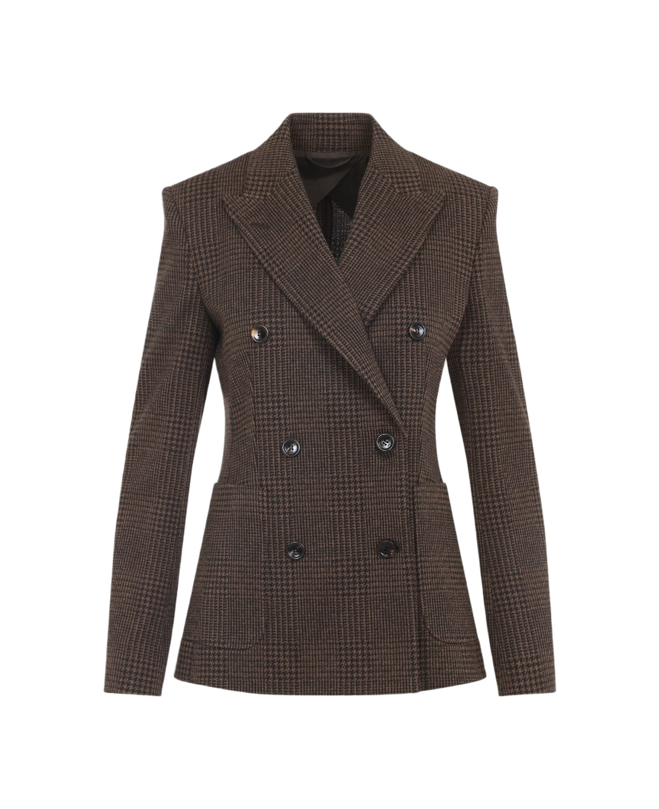 Max Mara Zulma Brown Cotton and Wool Jacket. Crafted from brown cotton and wool Prince of Wales, peak lapels, double-breasted with button fastening, two patch pockets, reinforced shoulders, buttoned cuffs, lined. Made in: Italy Color: Principe Di Galles Model number: 252191606260013270001