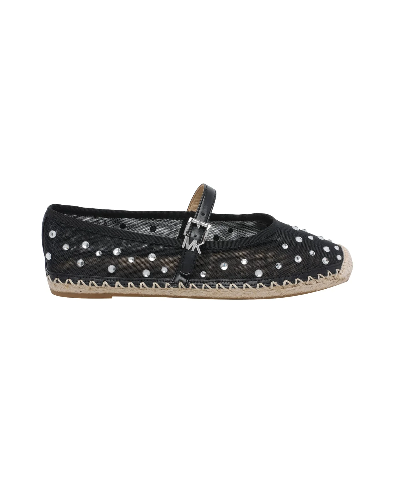 Michael Michael Kors black Lynn espadrilles, round toe, buckle closure, transparent effect, dots print Composition: 100% Fabric, 100% Crystal Glass/rubber Sole Made in: Vietnam Color: Black Size and fit: - us size Model number: 40R6LYFP2D001