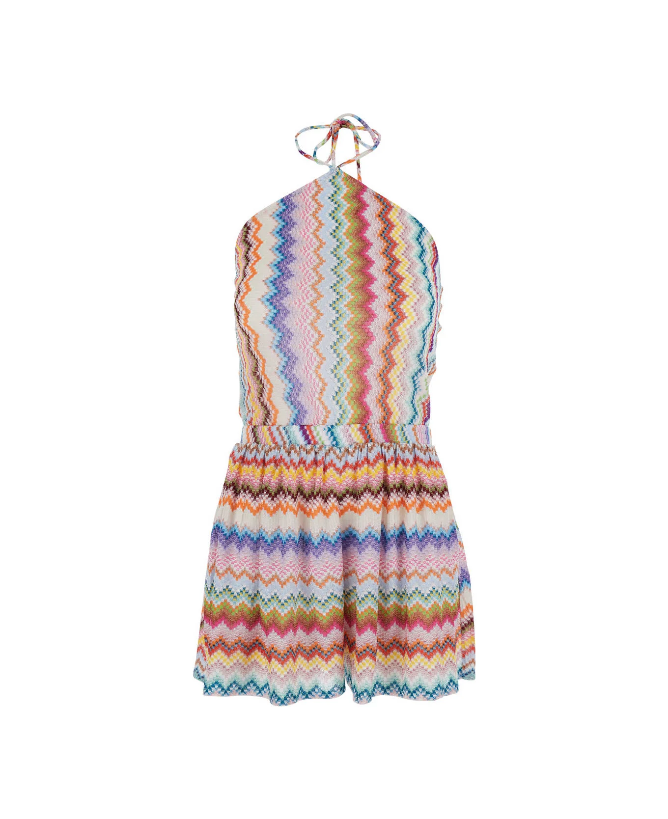 Short jumpsuit in lamé viscose with pixel-effect zigzag pattern