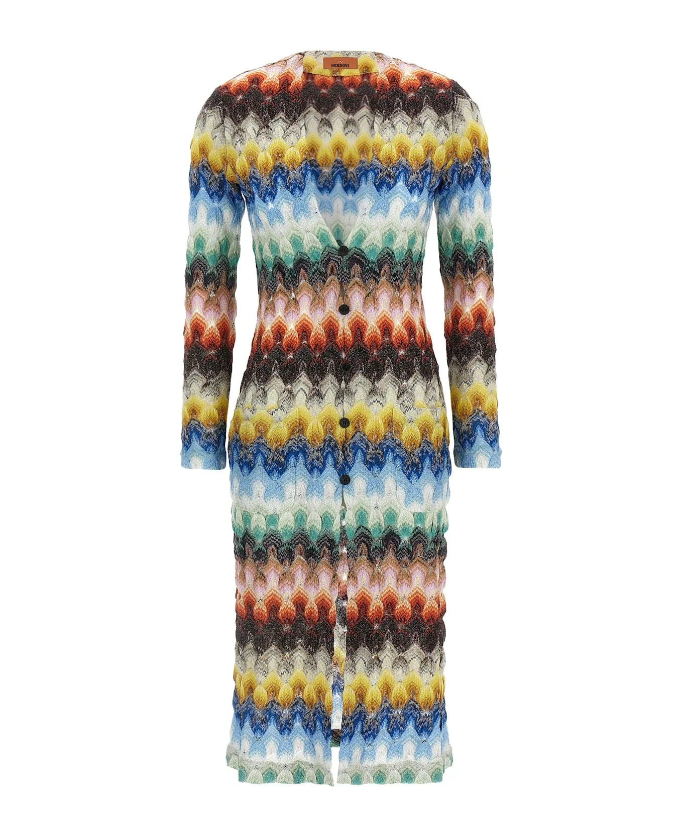 Long cardigan in lace viscose blend lame made in raschel, V-neck, front button closure, pockets, long sleeves. Composition: 85% viscose, 15% metal Made in: Italy Color: Multicolor Size and fit: - true to size fit Model number: DS26SM0SBR015JSMSNV