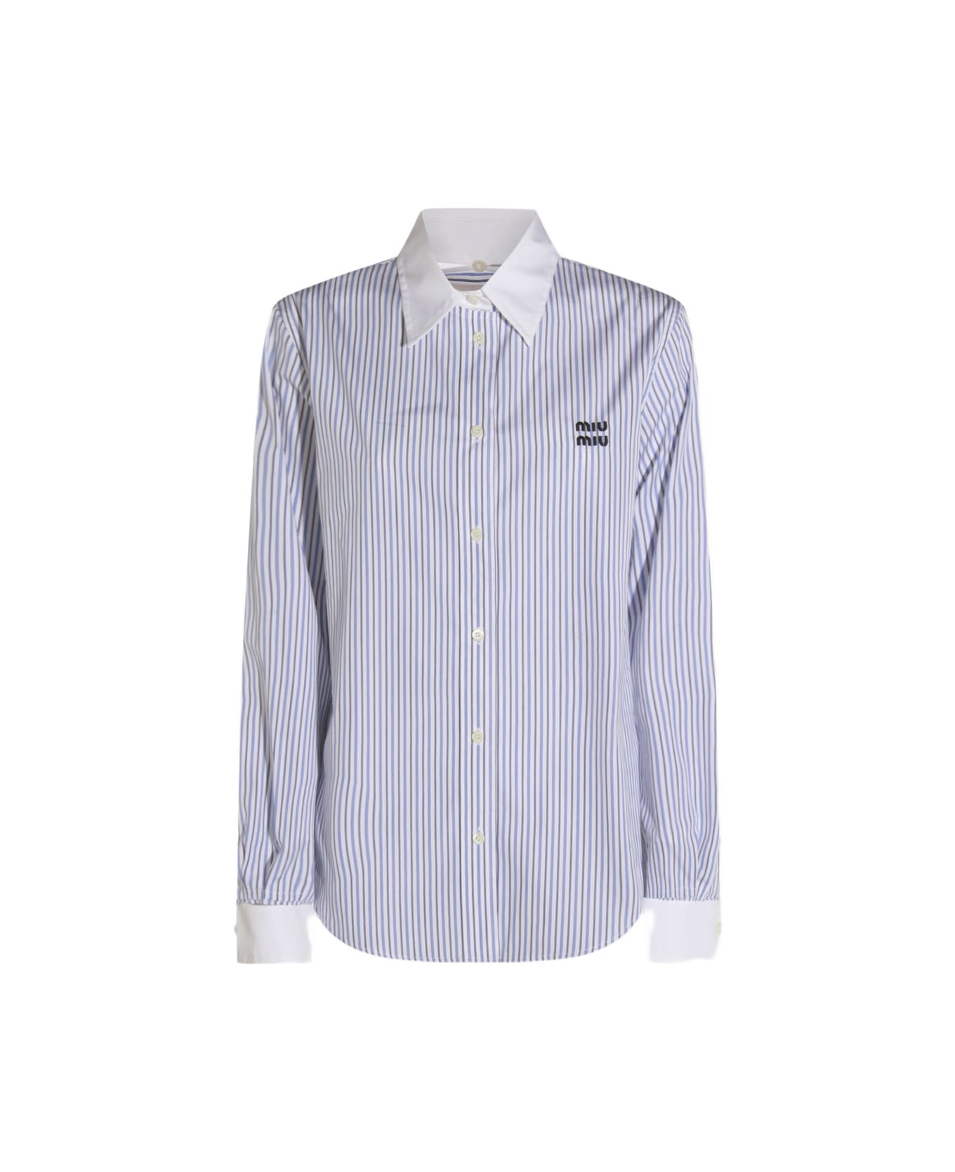 Beige and light blue from Miu Miu featuring long sleeves, frontal buttons fastening, logo and round hem. Composition: _, 100% Cotton Made in: Italy Color: White Model number: MK1972174TF0W3B