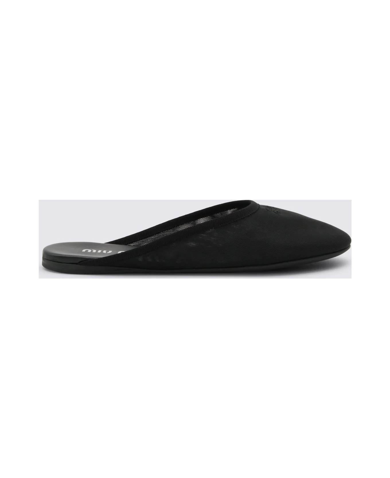 Black leather flats from Miu Miu featuring round toe, slip on style and leather sole. Composition: _, 100% Polyester Made in: Italy Color: Black Model number: 5R595EF005099F0002