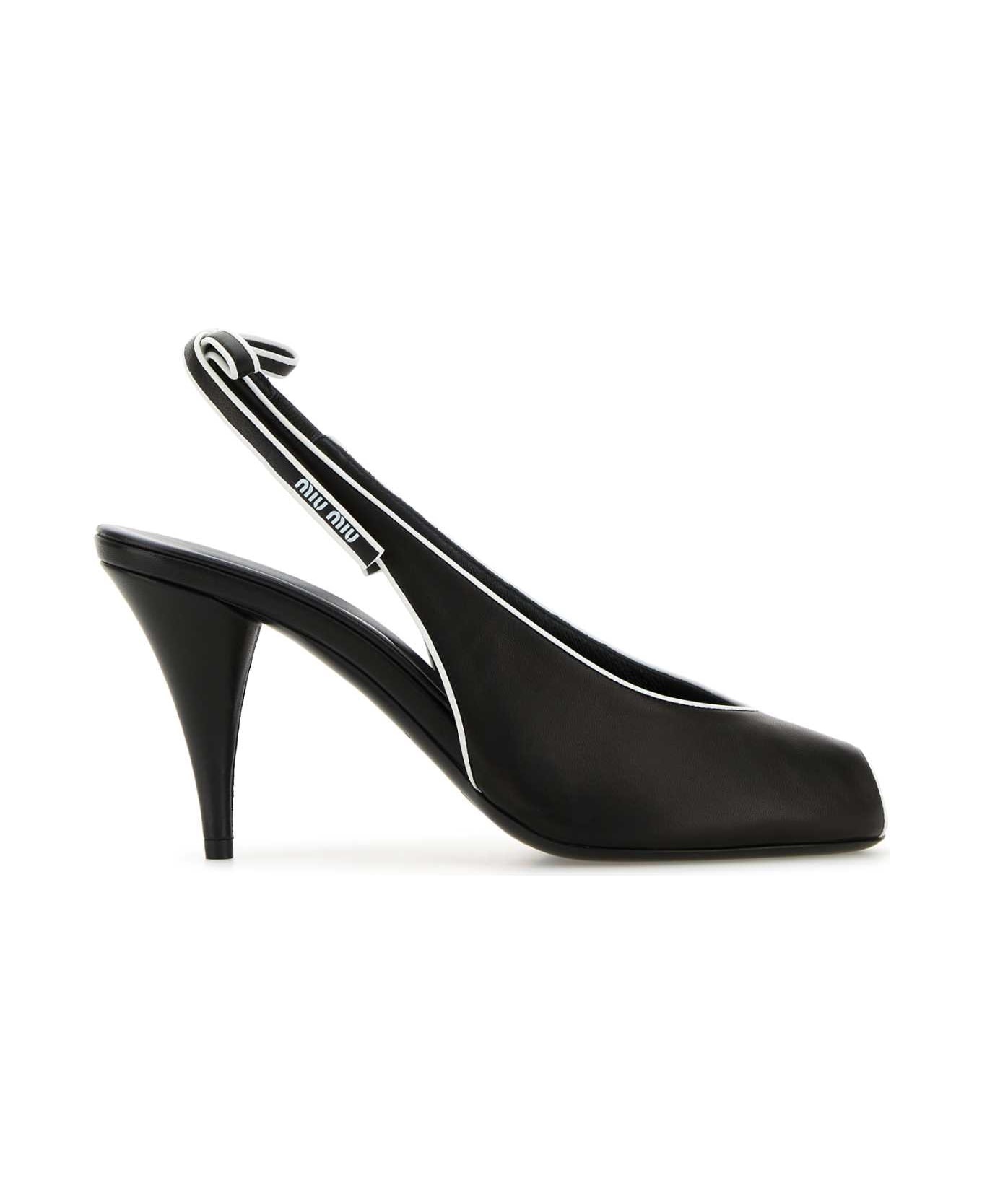 Black Nappa Leather Sandals from Miu Miu Made in: Italy Color: NEROBIANCO Size and fit: - Heel height: 8 cm Model number: 5X432EF085038F0967