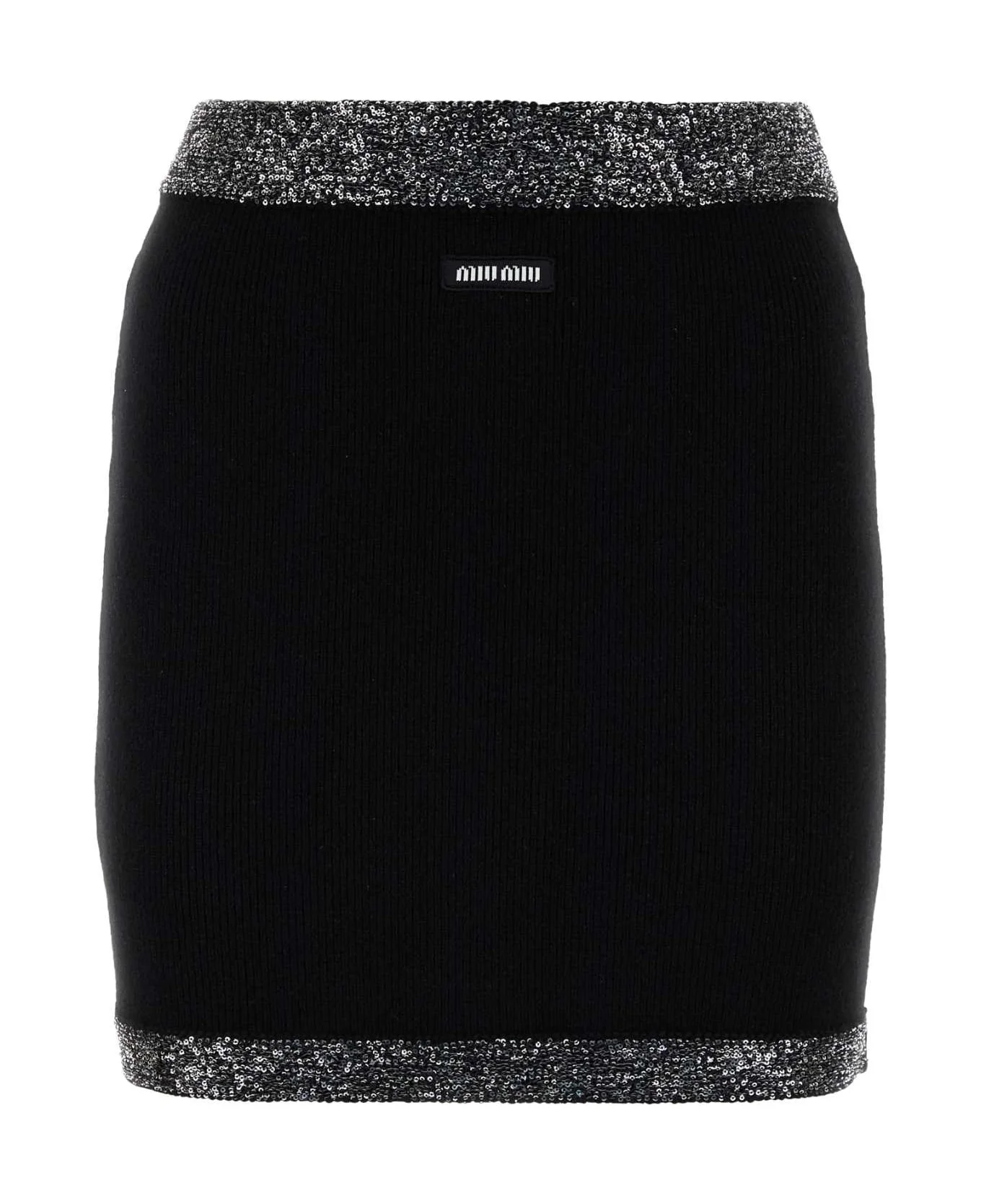 Black Stretch Cashmere Blend Mini Skirt