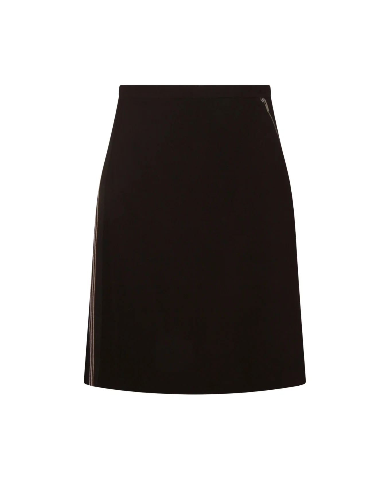 Brown skirt from Miu Miu featuring high waist, back zip closure, lateral bands, lettering logo and midi lenght. Composition: _, 85% Viscose, 11% Polyamide, 4% Elastane Made in: Italy Color: Brown Model number: MG2566SOOO18FQF0324