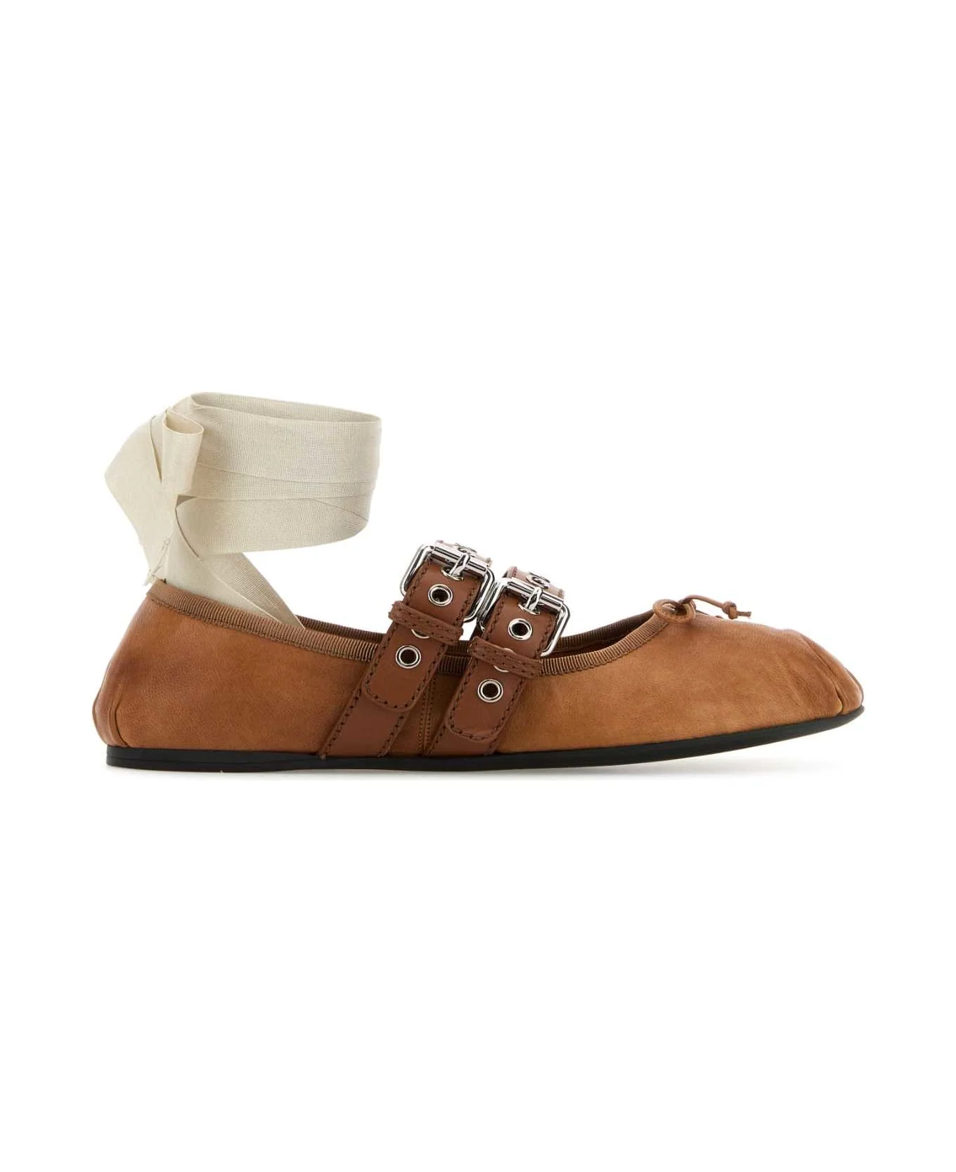 Caramel Leather Ballerinas from Miu Miu Made in: Italy Color: CARAMEL Model number: 5F466AFG0053ZLVF098L