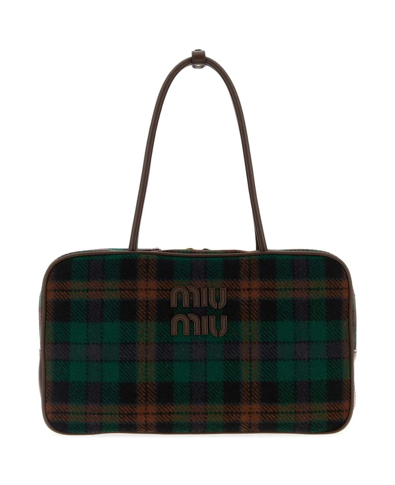 Beau tartan top-handle bag with leather details