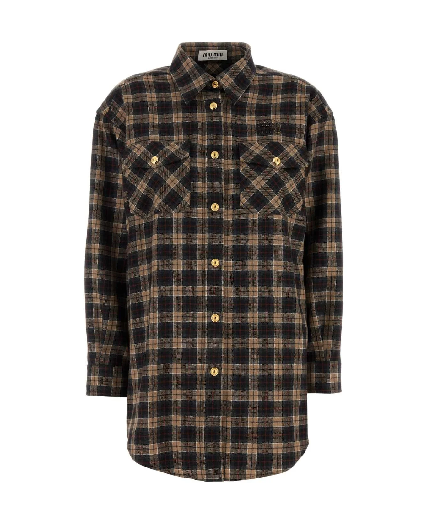 Embroidered Wool Oversize Shirt from Miu Miu Made in: Italy Color: CAMMELLO Model number: MK1906SOOO16DOF0040