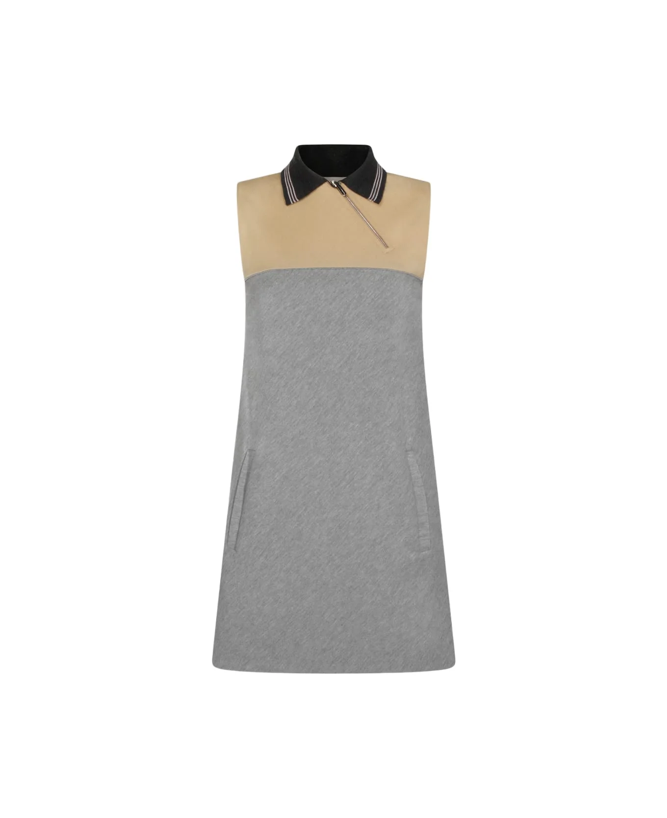 Grey and camel dress from Miu Miu featuring shirt neck, zip fastening, sleeveless, pockets and regular vestibility. Composition: _, 85% Viscose, 11% Polyamide, 4% Elastane Made in: Italy Color: GRIGIO+CAMMELLO Model number: MF6114SOOO18FXF0LPX