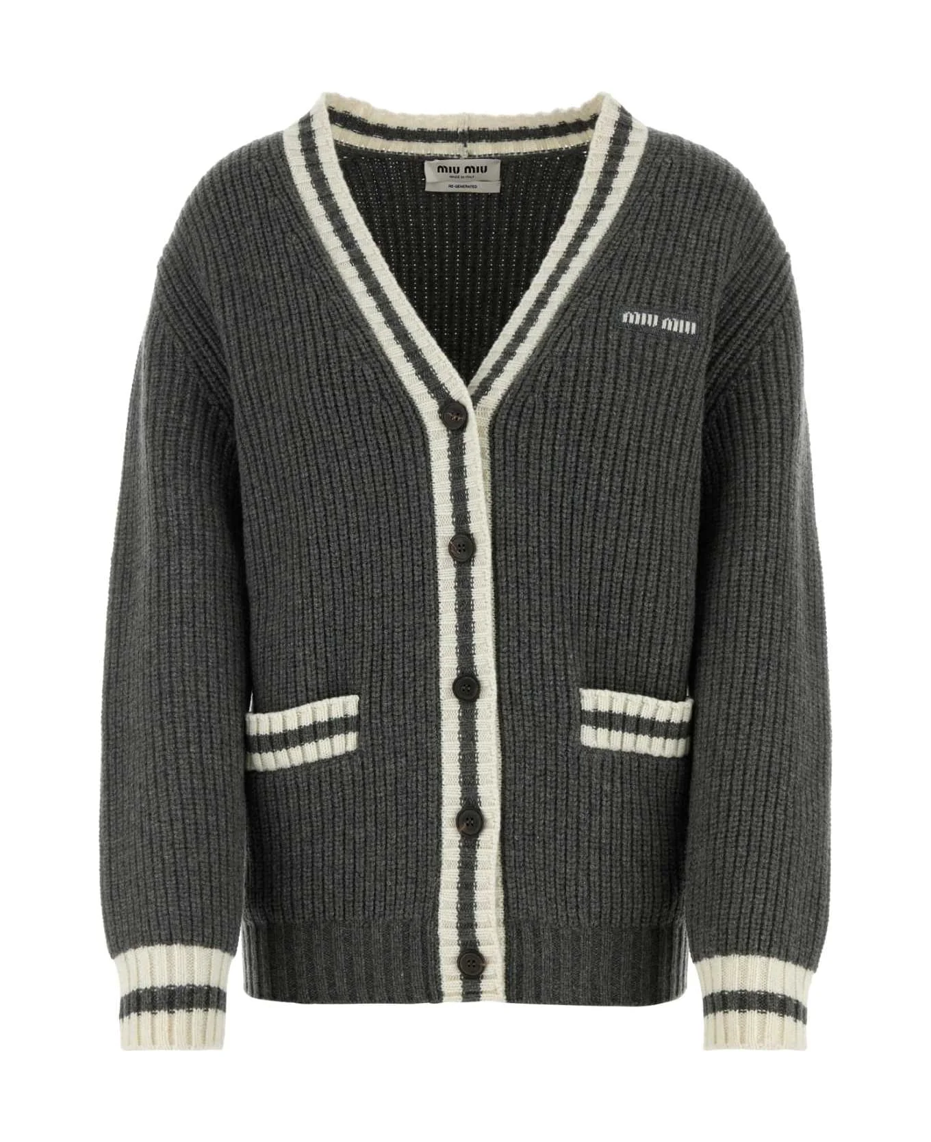Grey Cashmere Blend Oversize Cardigan from Miu Miu Made in: Italy Color: ARDESIA Model number: MMF929SOOO150HF0480