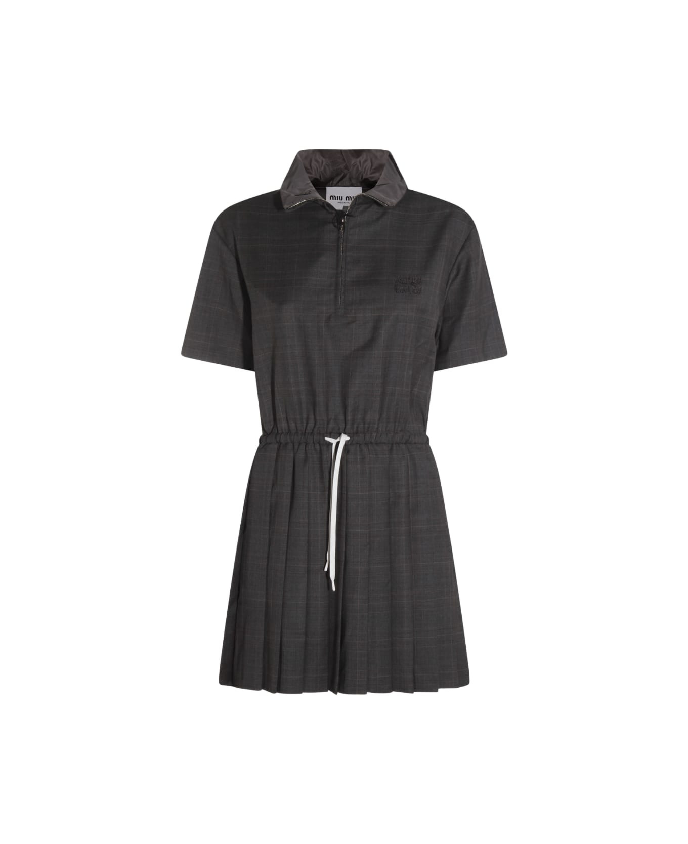 Grey wool dress from Miu Miu featuring short sleeves, shirt collar, mini length and waist laces. Composition: _, 100% Virgin Wool Made in: Italy Color: Grey Model number: MF5994175YF0480