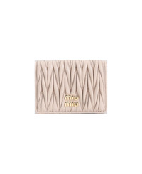 Miu Miu Pink Lamb Leather Wallet. Crafted from pink matelasse lamb leather, gold-toned metal logo on the front, snap button fastening, five inner card slots and one zip pocket. Made in: Turkey Color: Cipria Size and fit: - W:12cm H:8cm D:2cm Model number: 5MV021AFPPF0236