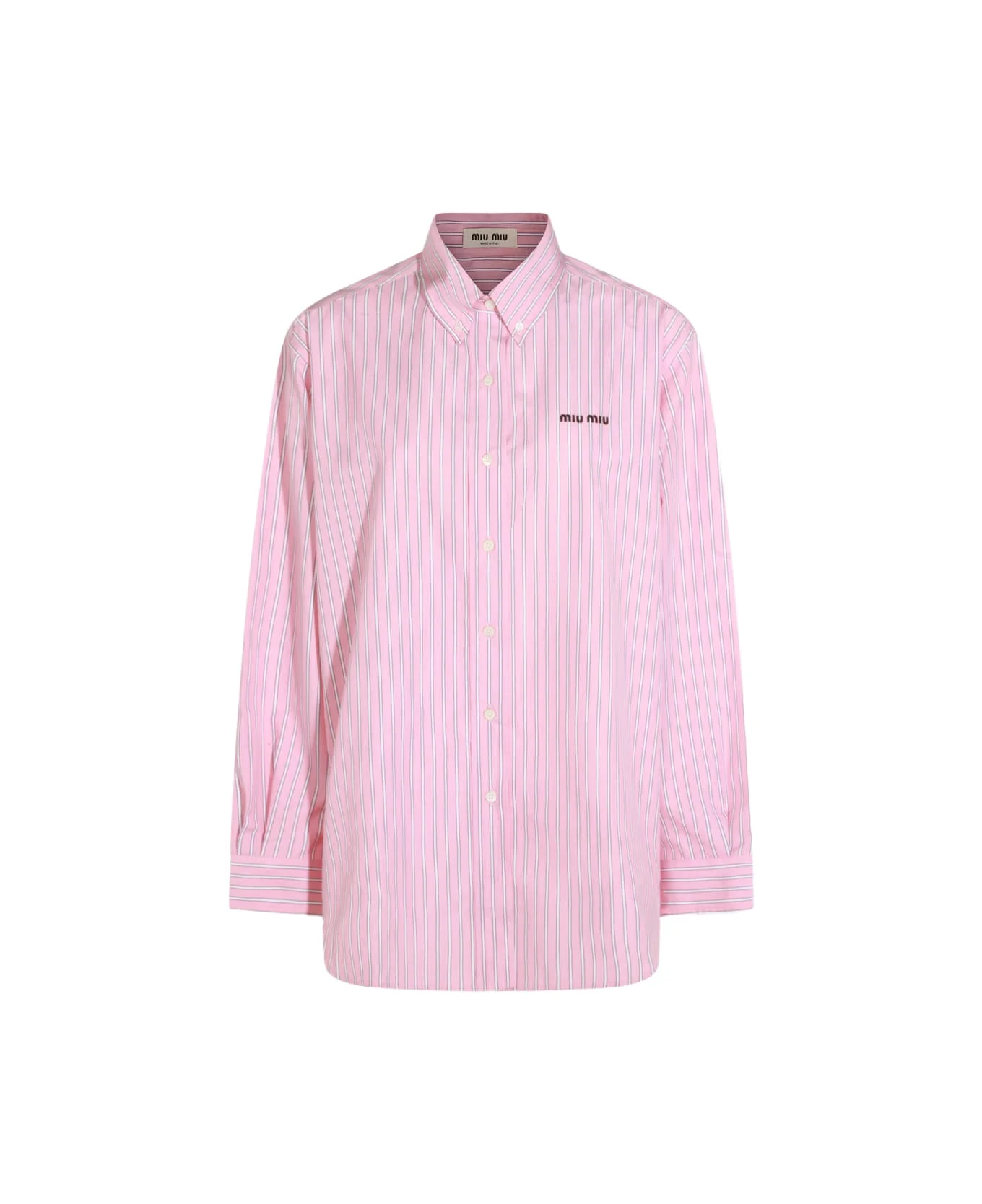 Pink cotton shirt from Miu Miu featuring regular neck, buttons fastening, long sleeves, frontal logo and oversize vestibility. Composition: _, 100% Cotton Made in: Italy Color: Pink Model number: MK2007SOOO180UF0028