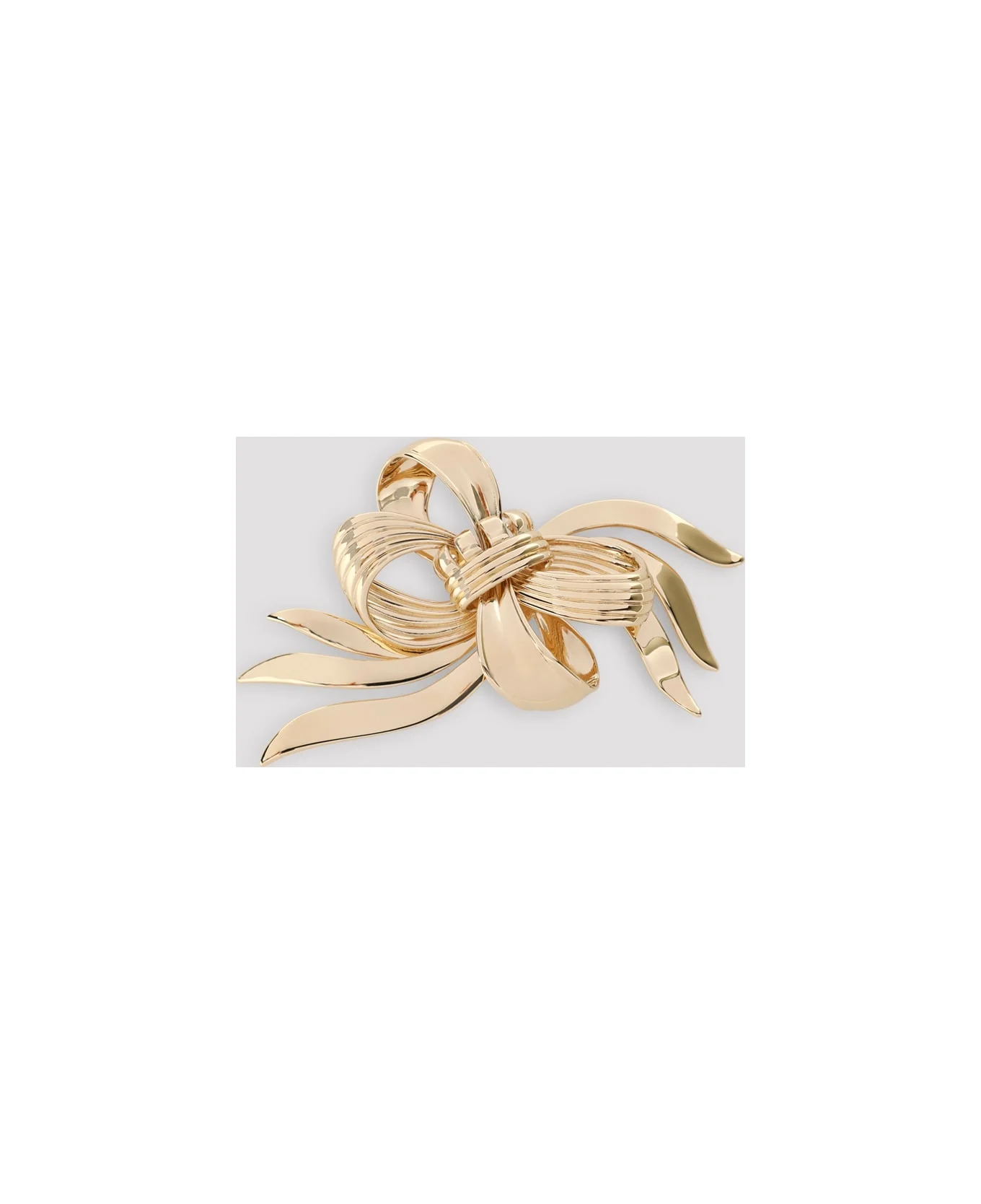 Miu Miu Gold Brass Pin. Pure gold-tone brass pin, front bow detail, back engraved logo, back pinned fastening. Made in: Italy Color: Oro Model number: 5IS1312IEVF0056