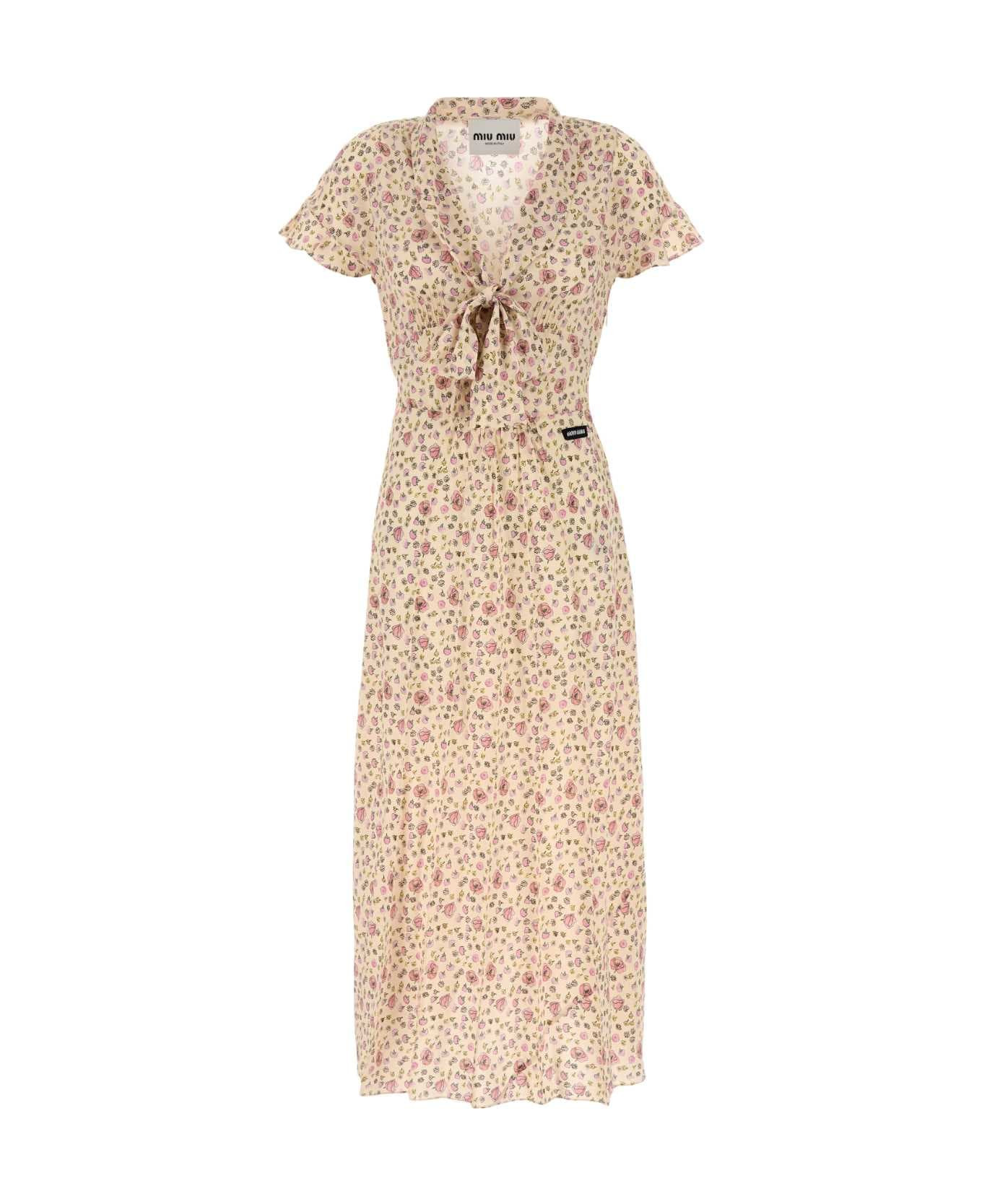 Printed Silk Dress from Miu Miu Made in: Italy Color: CAMMEO Model number: MF5971SOOO175RF0770