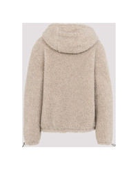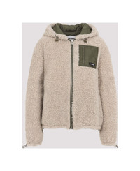 Miu Miu Beige and Green Wool Blouson Jacket. Beige shearling wool and green tech fabric, drawstring hood, long sleeves, front zip fastening, Drawstring cuffs, logo and pocket on chest. Regular fit. Made in: Romania Color: Qq Calce Militare Model number: ML1376SOOO18S9F03QQ