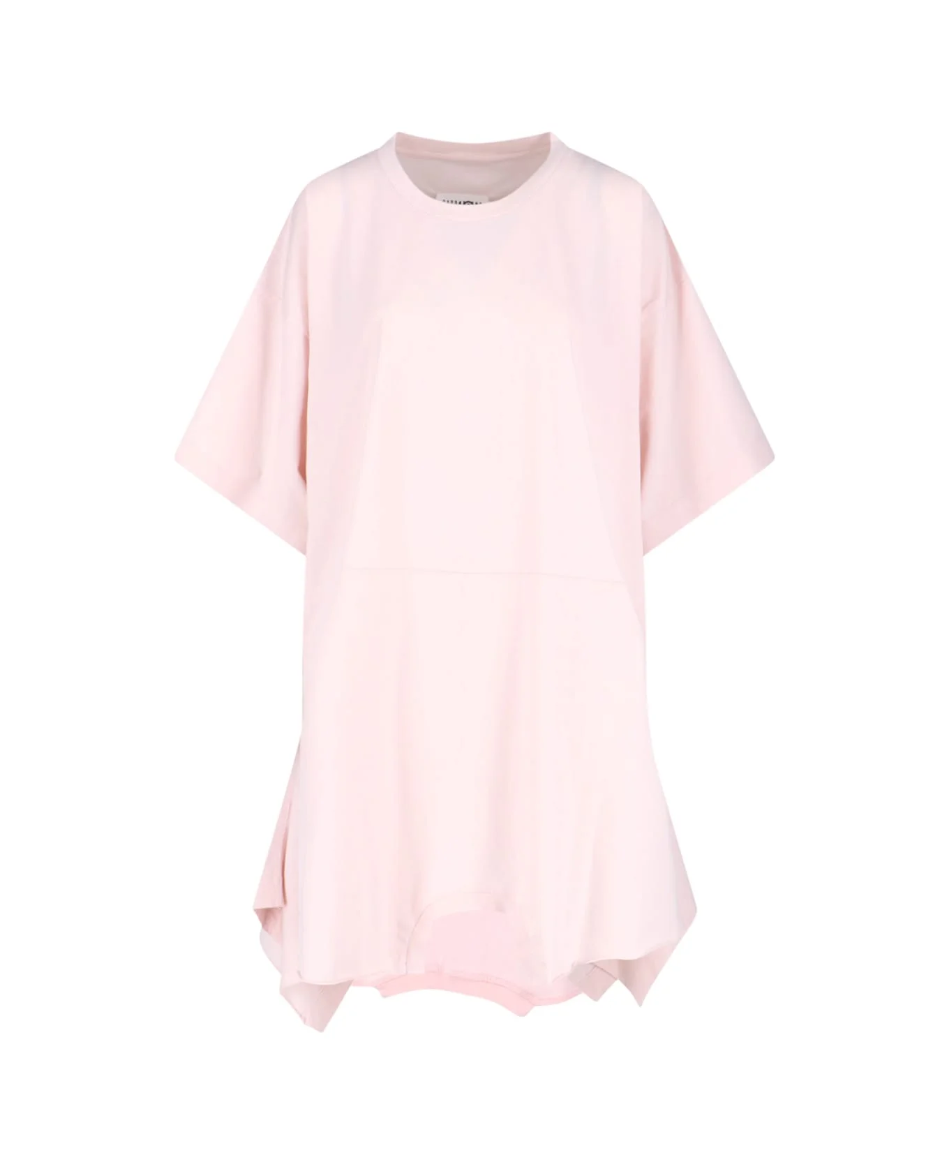 Maison Margiela MM6 asymmetrical pink cotton dress with crew neck, short sleeves, dropped shoulders, asymmetrical hem. Composition: 100% Cotton Made in: Italy Color: Pink Size and fit: - Vestibilita regolare Model number: S52CT0795M20170231