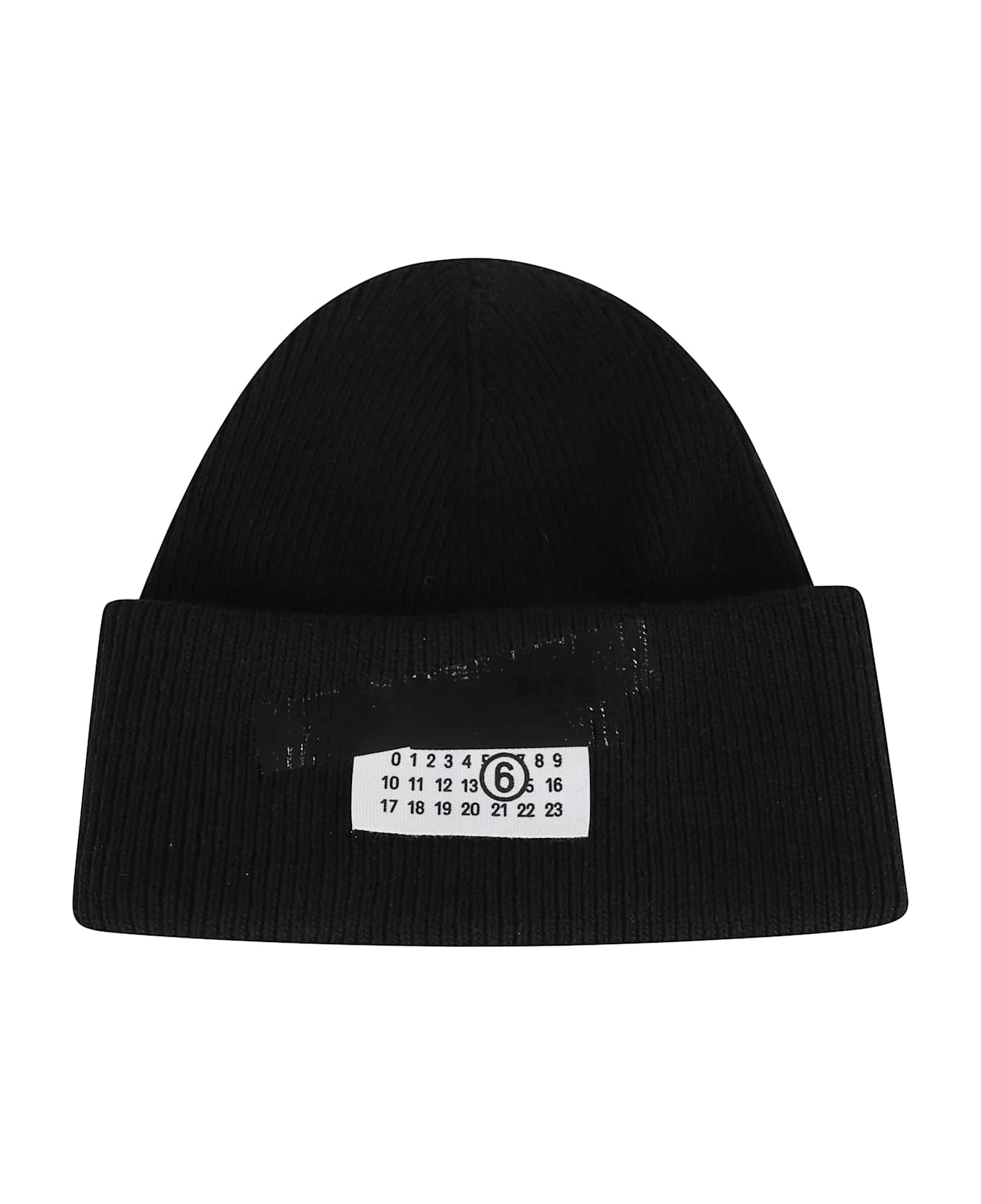 Beanie hat -MM6 Maison Margiela -Black color -Front flap -Front logo Made in: Italy Color: S Nero Model number: SH2TB0003M13168|097