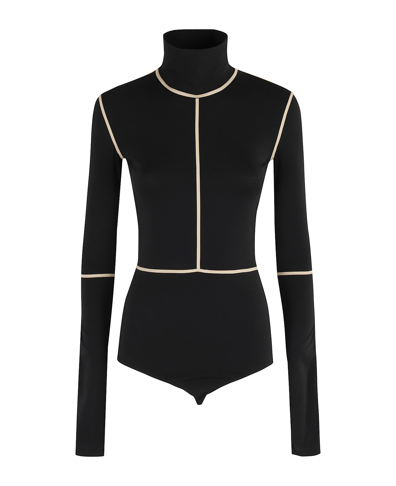 Bodysuit - MM6 Maison Margiela - black color - contrasting beige piping - high neck - long sleeves - stretch cotton jersey fabric - snap bottom closure Made in: Italy Color: Black Model number: S52NA0072M20125|097