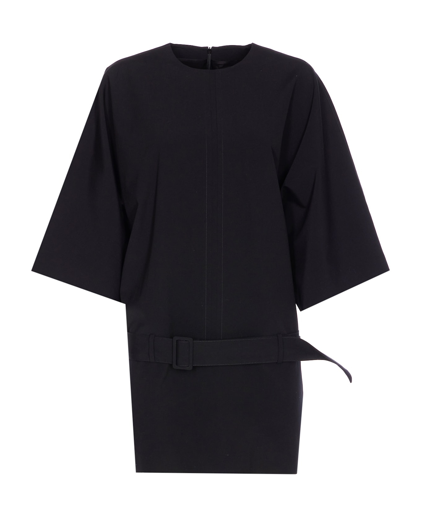 MM6 Maison Margiela black dress, zip closure on the back, crewneck, wide model, belt detail, mini model Composition: 67% Virgin Wool, 30% Cotton, 3% Elastane, 100% Viscose Made in: Italy Color: Black Size and fit: - EU SIZE (IT) Model number: S62DA0062M35614900