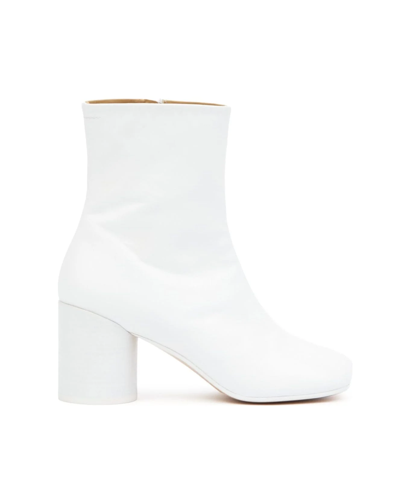 white calf leather grained texture side zip fastening high block heel branded heel counter ankle-length square toe Composition: Furs & Skins->lamb Skin100. , 0% Furs & Skins->calf Leather100. , 0% Furs & Skins->calf Leather100. , 0% Made in: Italy Color: White Model number: S59WU0235P3628T1003