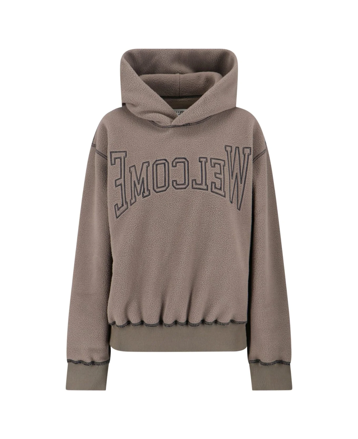 Maison Margiela MM6 logo hoodie in taupe fabric, teddy pattern, contrast logo embroidery on the front, ribbed trim, contrast stitching, straight hem. Composition: 100% Polyester Made in: Italy Color: Taupe Size and fit: - Vestibilita morbida Model number: S52GU0243M20126809